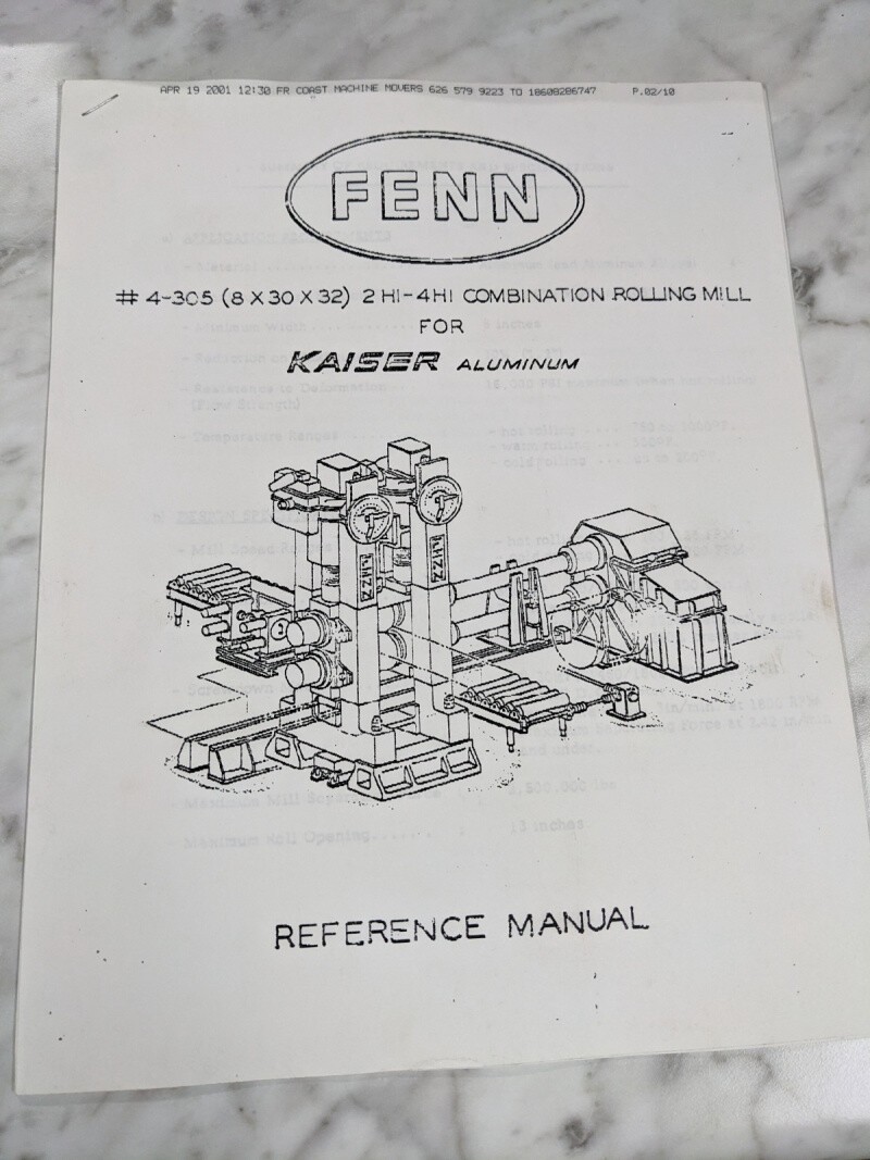 Fenn Kaiser Aluminum #4-605 2 Hi 4 Combination Rolling Machine Reference Manual