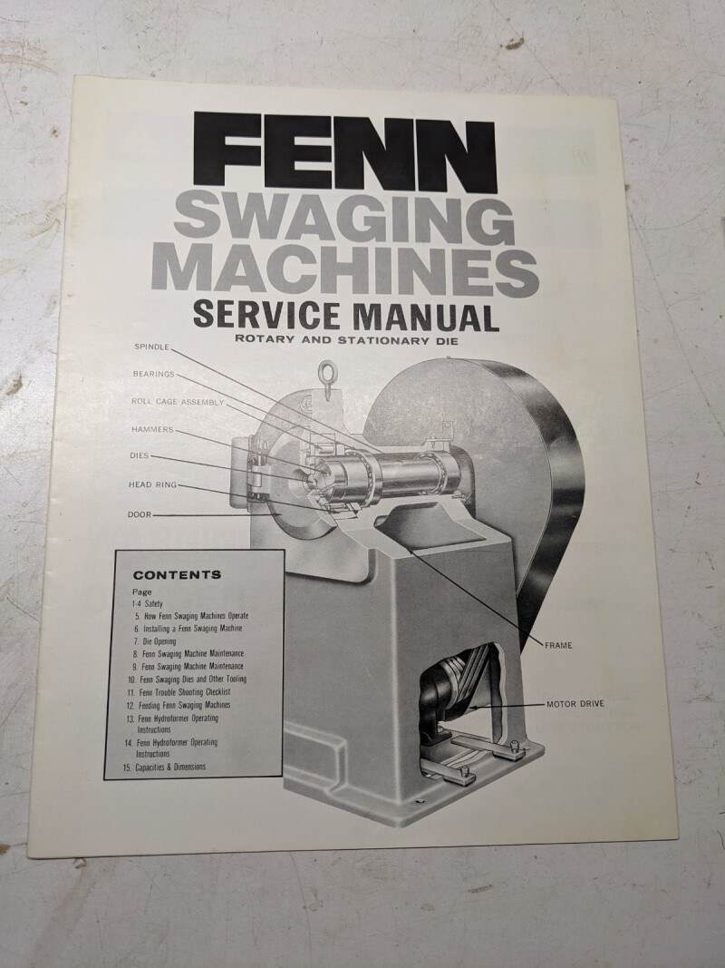 Fenn Swaging Machines Service Operator Instruction Manual Rotary Stationary Die