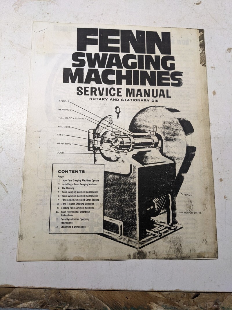 Fenn Swaging Machines Service Operator Manual Shop Book Copy