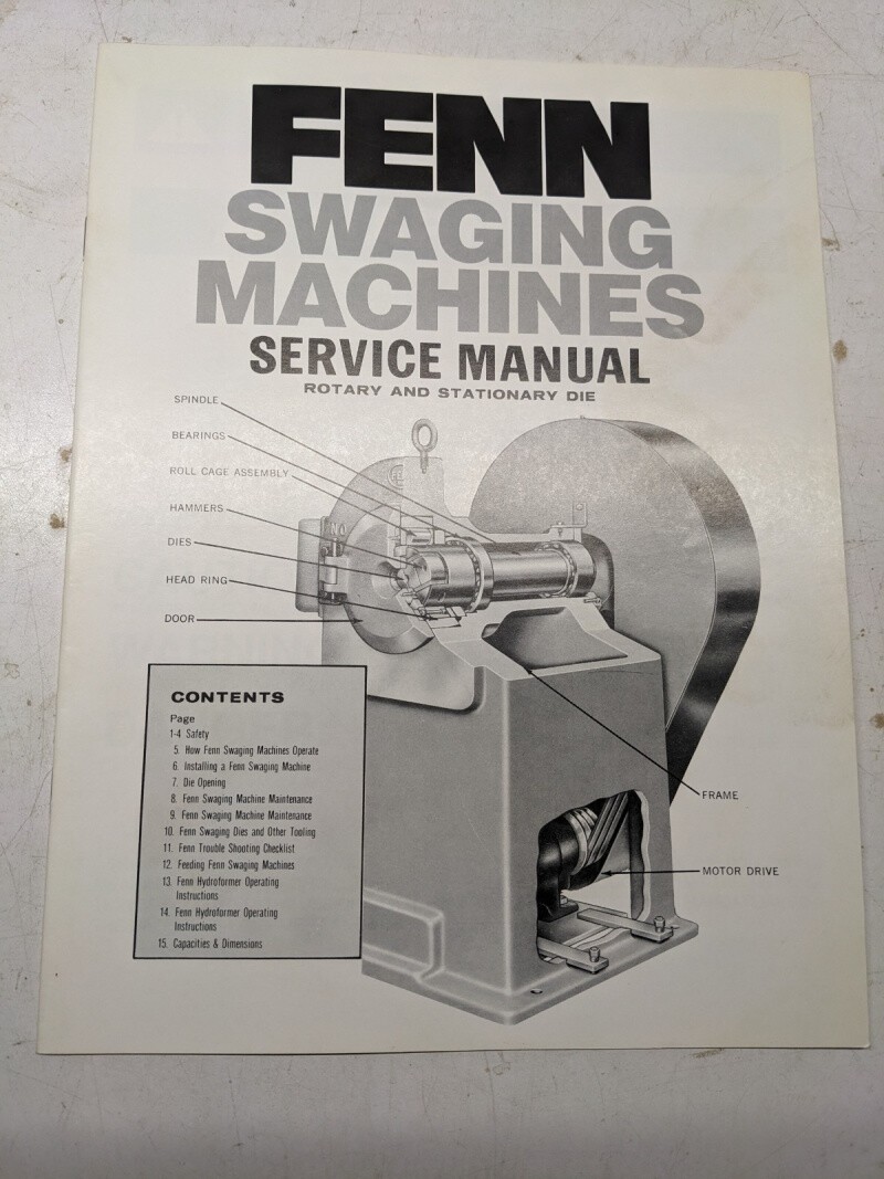 Fenn Swaging Machines Service Operator Manual Shop Book Rotary Stationary Die