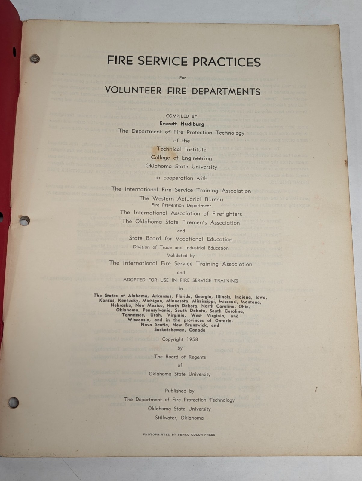 Fire Service Practices For Volunteer Fire Fighting Departments 3Rd Edition 1958