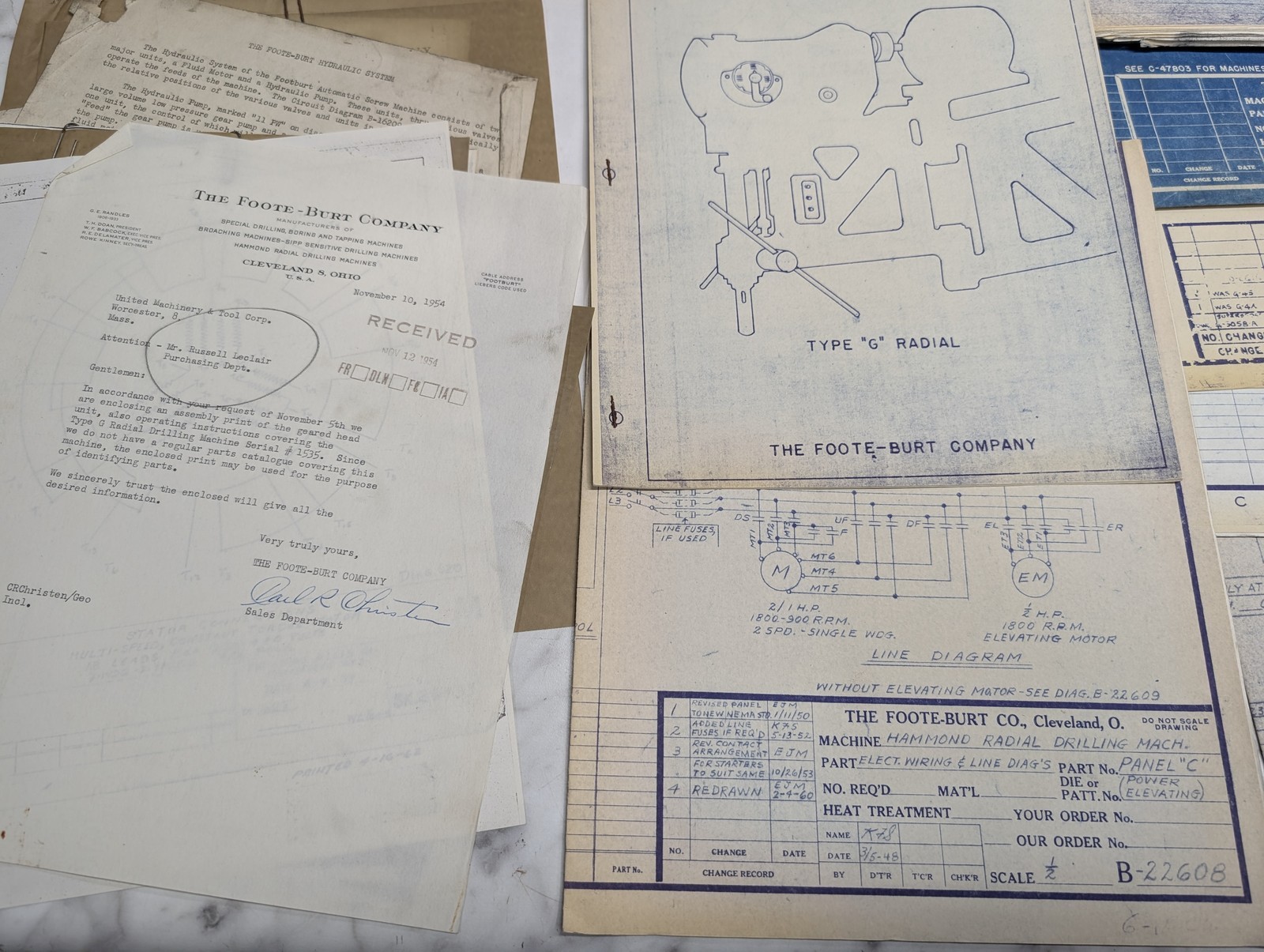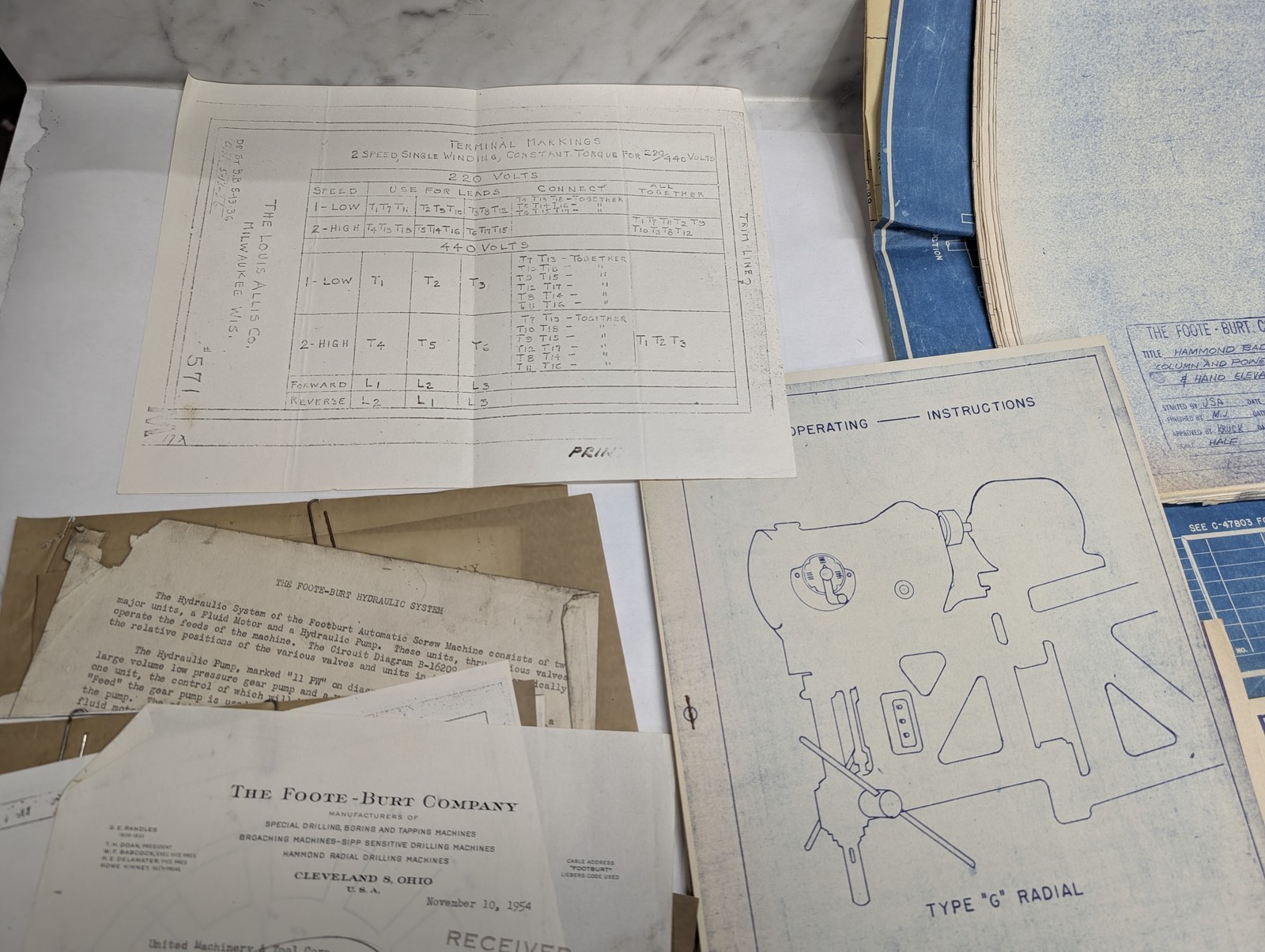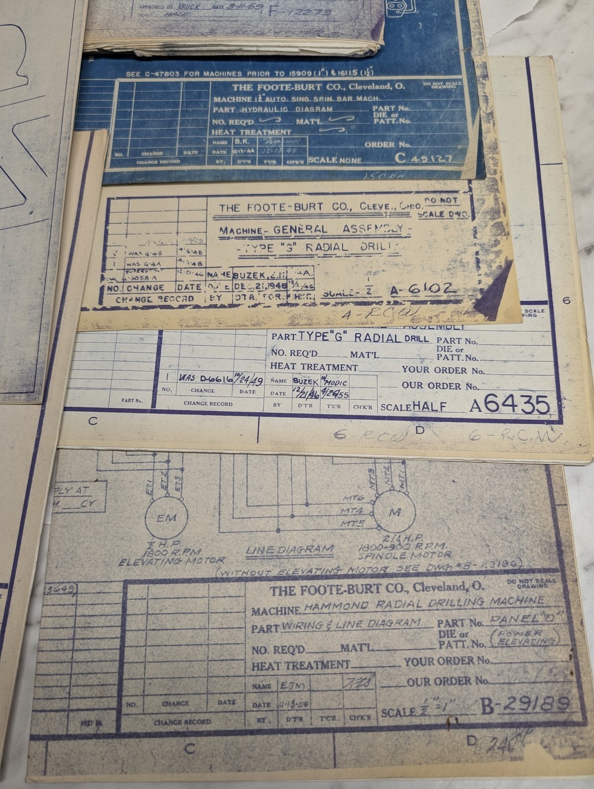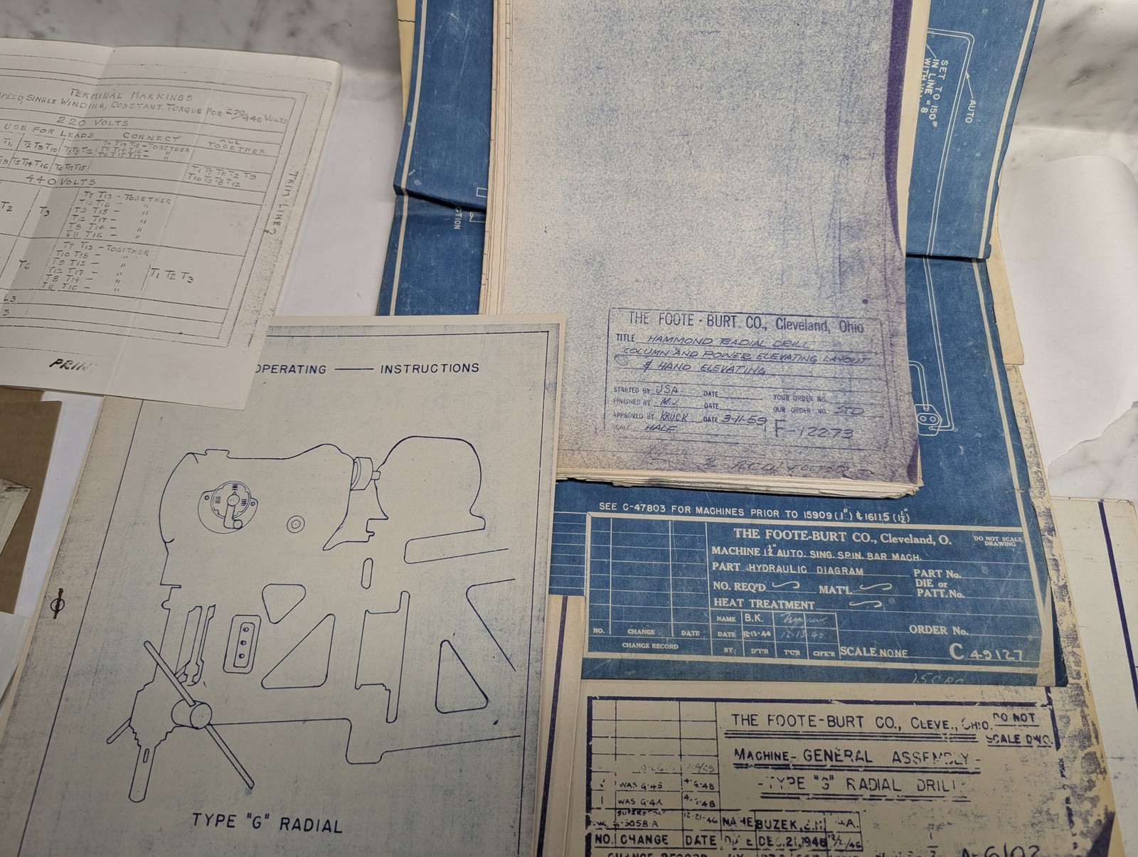 Foote-Burt Machine Tool Radial Drill “G” Blue Prints Diagrams Drawings Info Lot