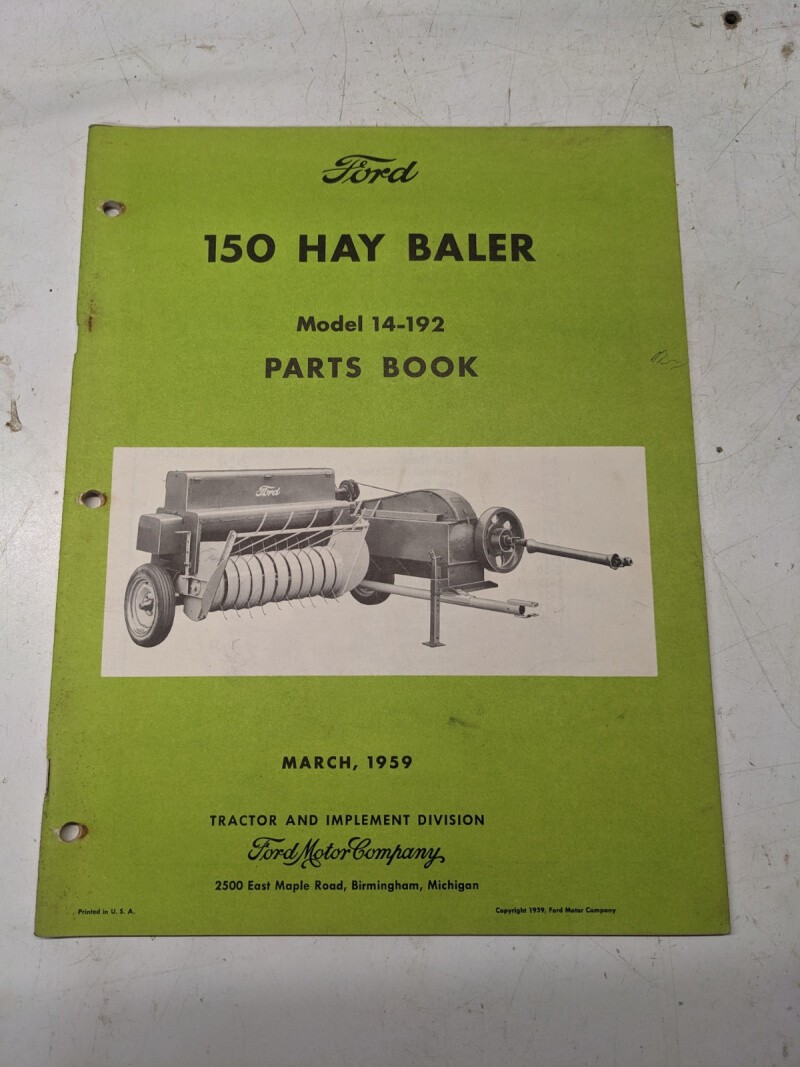 Ford 14-192 1959 150 Hay Balers Tractor Attachment Parts List Catalog Manual
