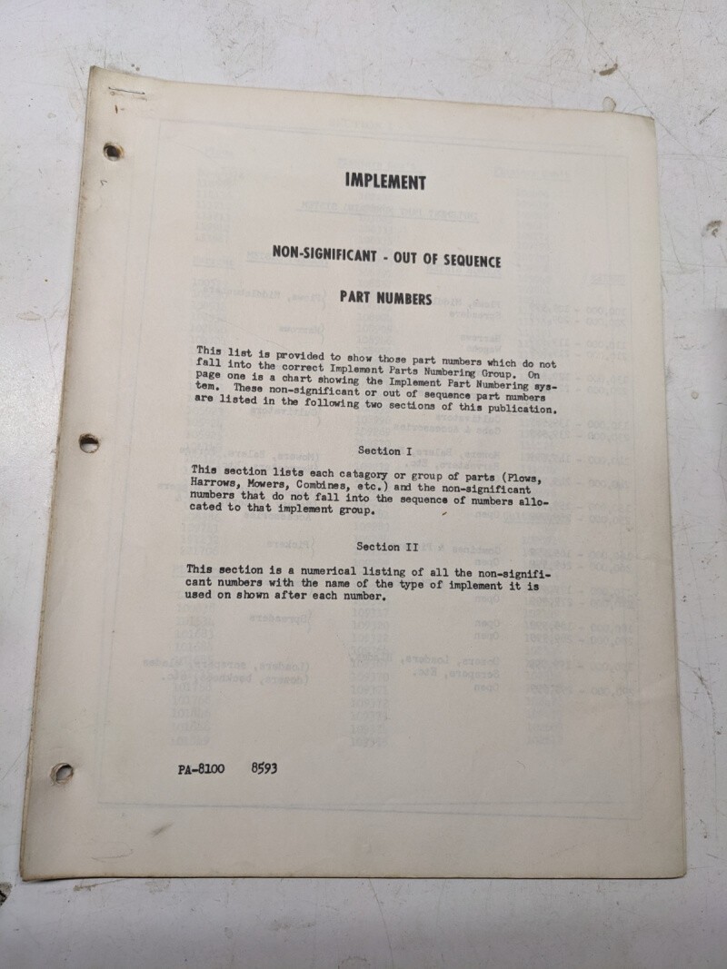 Ford Implement Non-Significant Out Of Sequence Part Numbers Book Manual List
