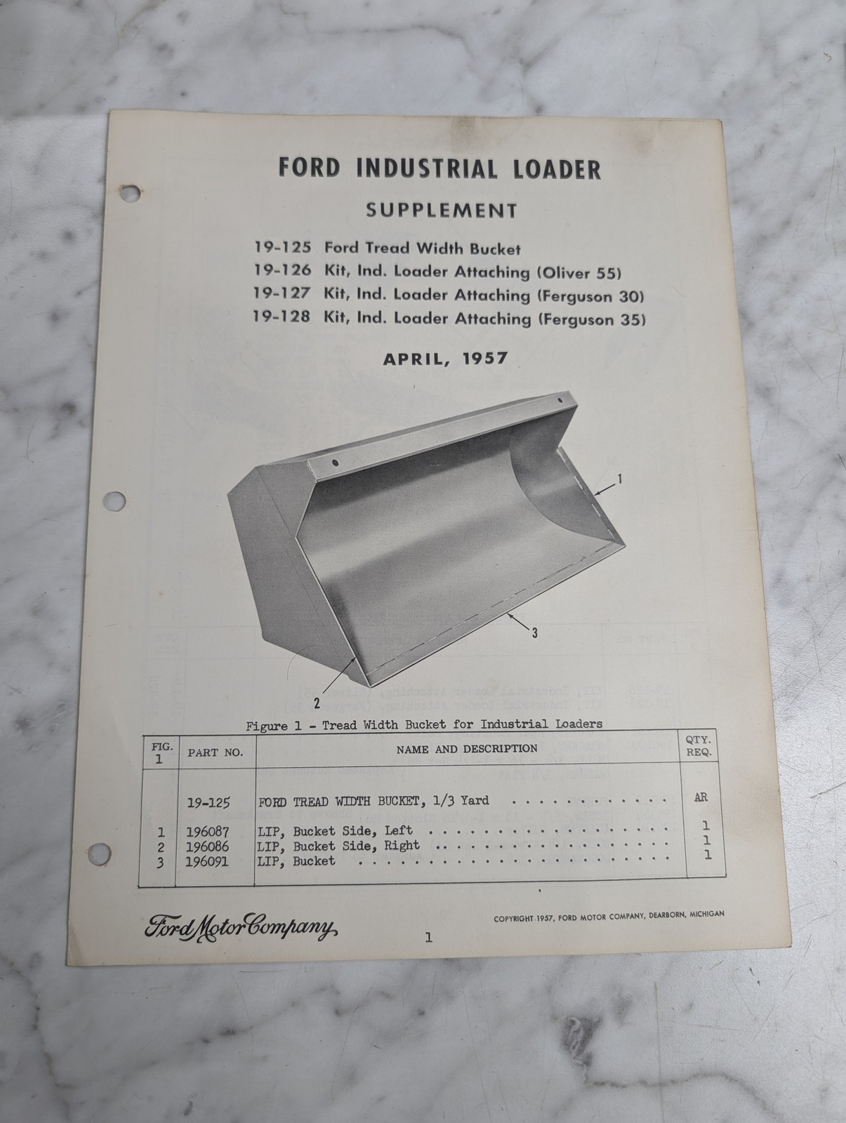 Ford Industrial Loader Supplement Parts List Manual Catalog Illustrated