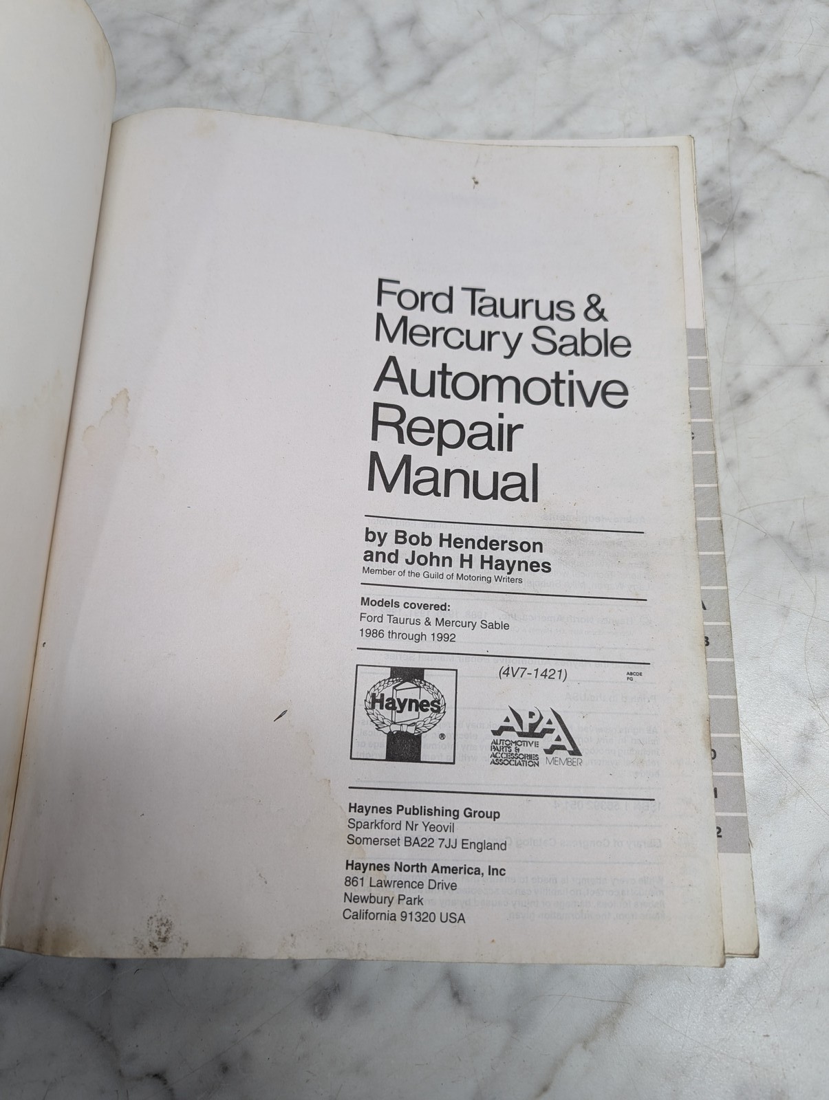 Ford Mercury Taurus 1986 Thru 1992 Automotive Repair Manual Haynes 1421
