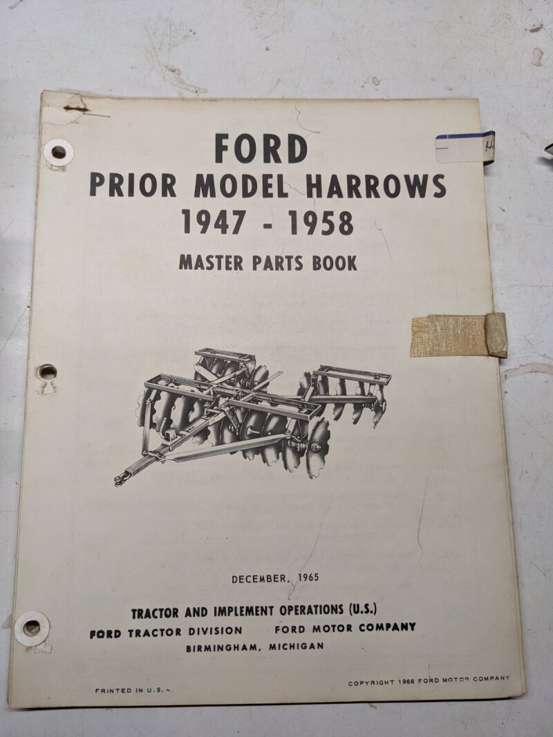Ford Prior Model Harrows 1947-1958 Master Parts Book List Catalog Manual 1965