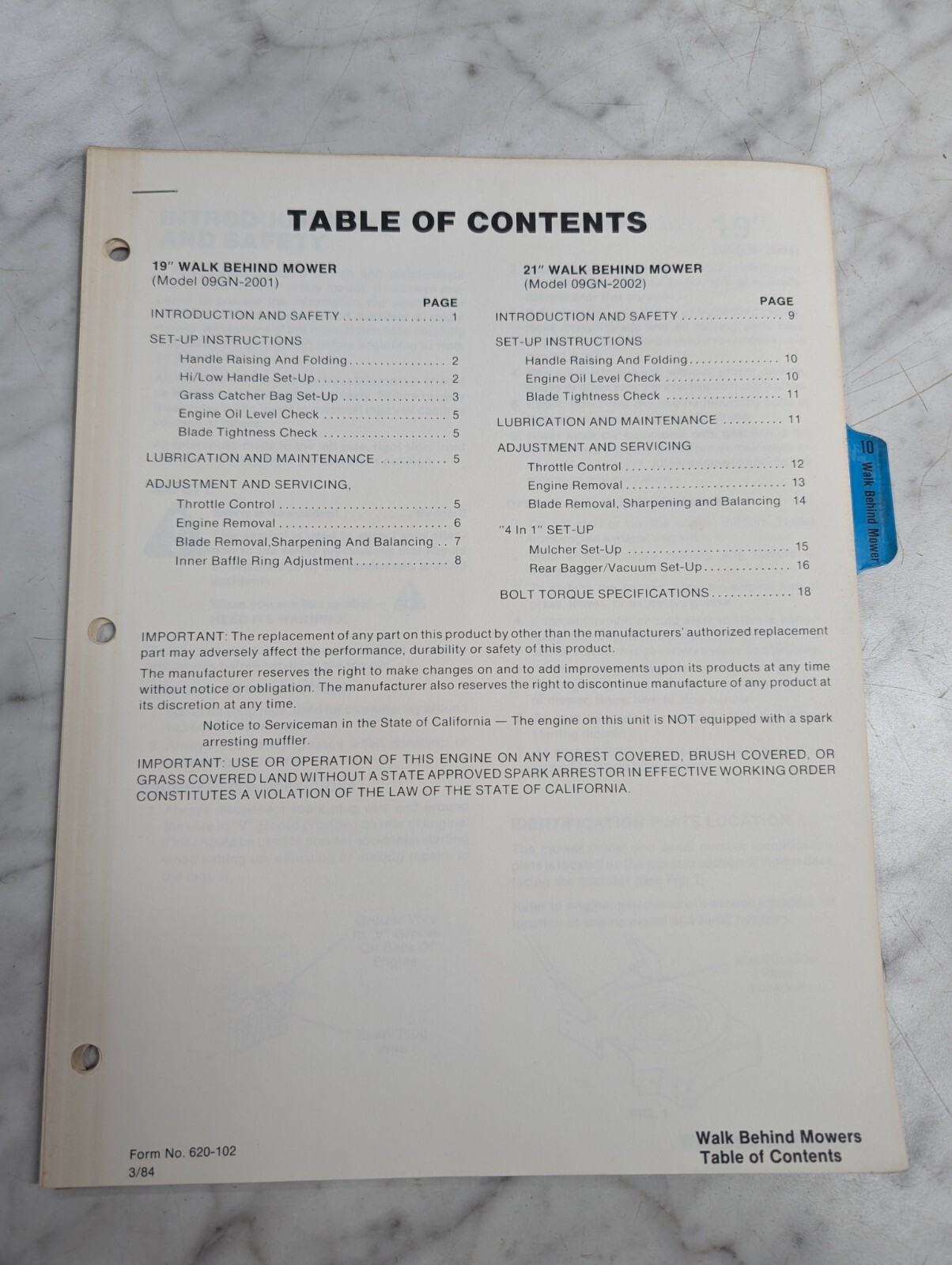 Ford Repair Service Manual 19″ 21″ Walk Behind Mower Model 09Gn 2001 2002 1984