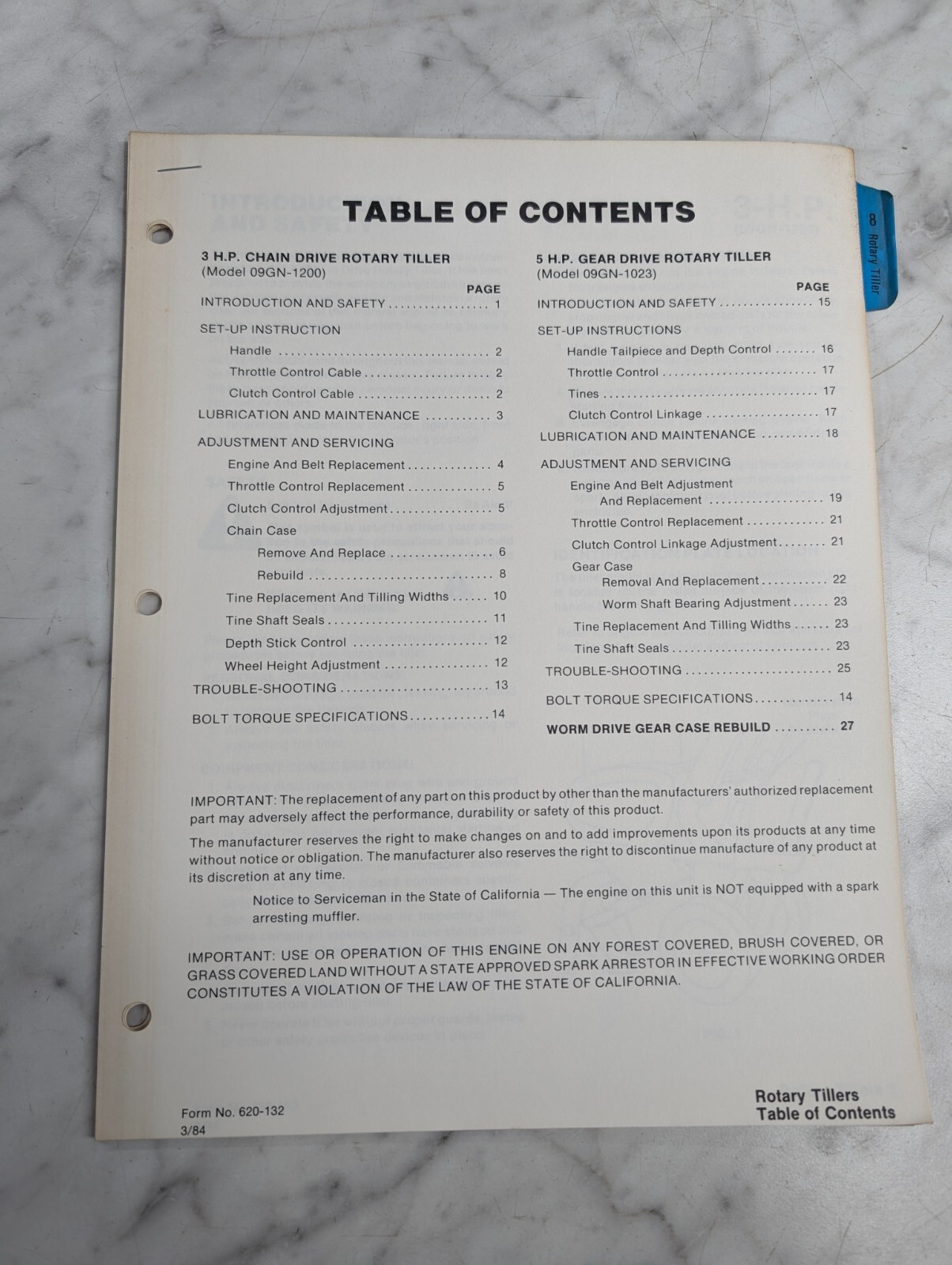 Ford Repair Service Manual 3 Hp Chain Drive Rotary Tiller Model 09Gn 1200 1984