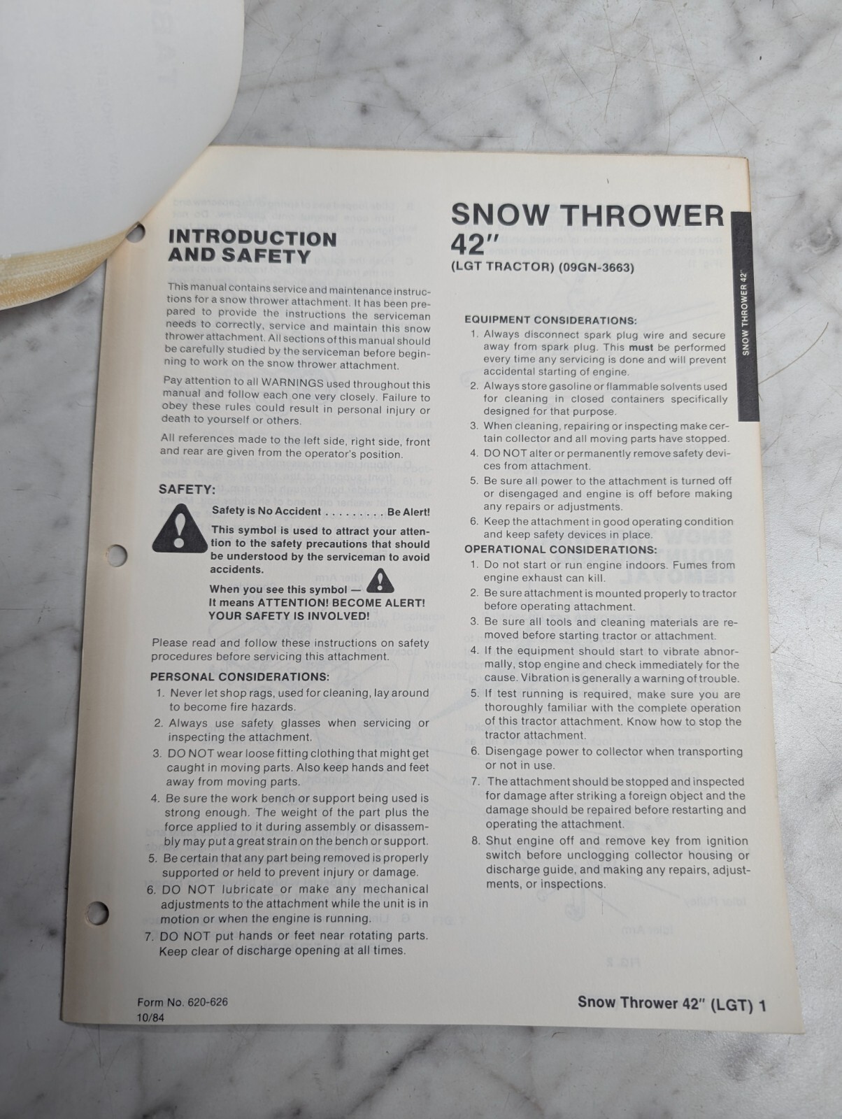 Ford Repair Service Manual 42″ Snow Thrower Attachment 09Gn 3663 ’84 Lgt Tractor