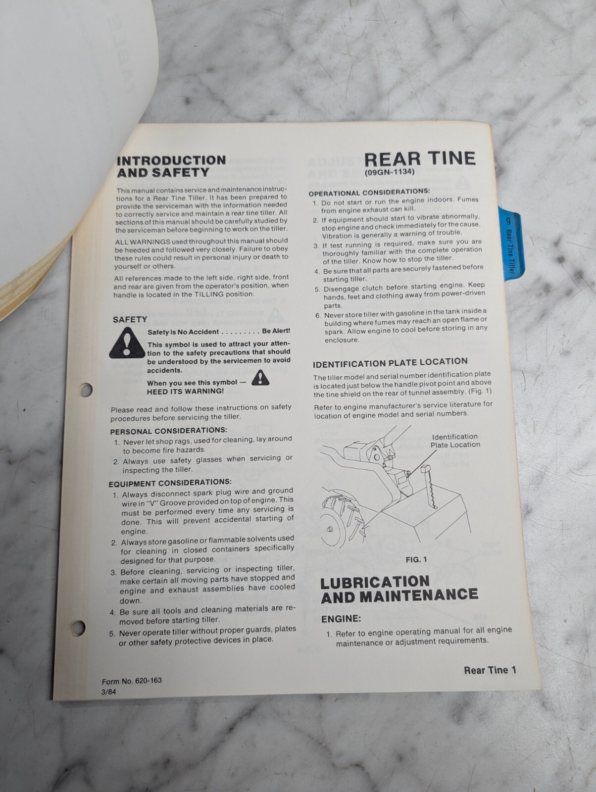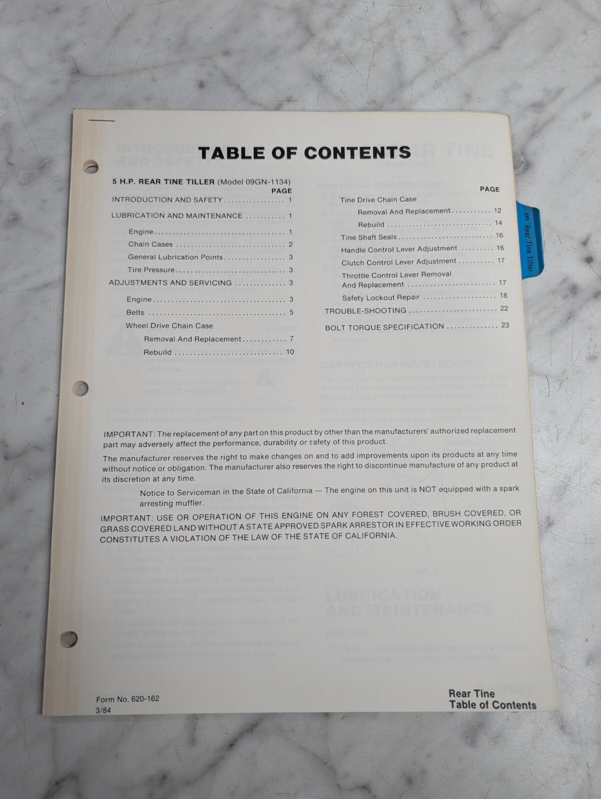 Ford Repair Service Manual 5 Hp Rear Tine Tiller Model 09Gn 1134 1984