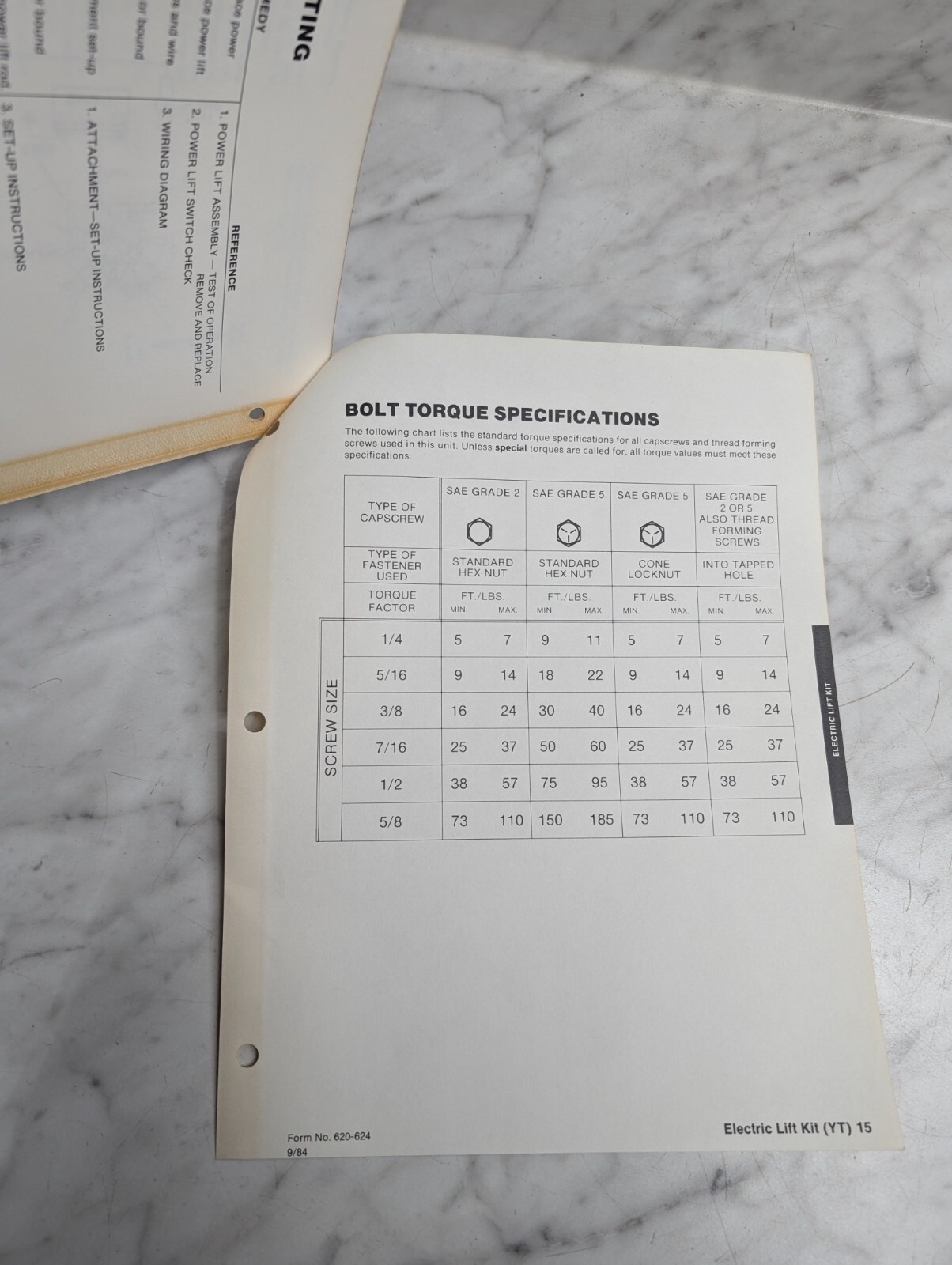 Ford Repair Service Manual Electric Lift Kit Attachment Gb 63646 1984 Yard Yt