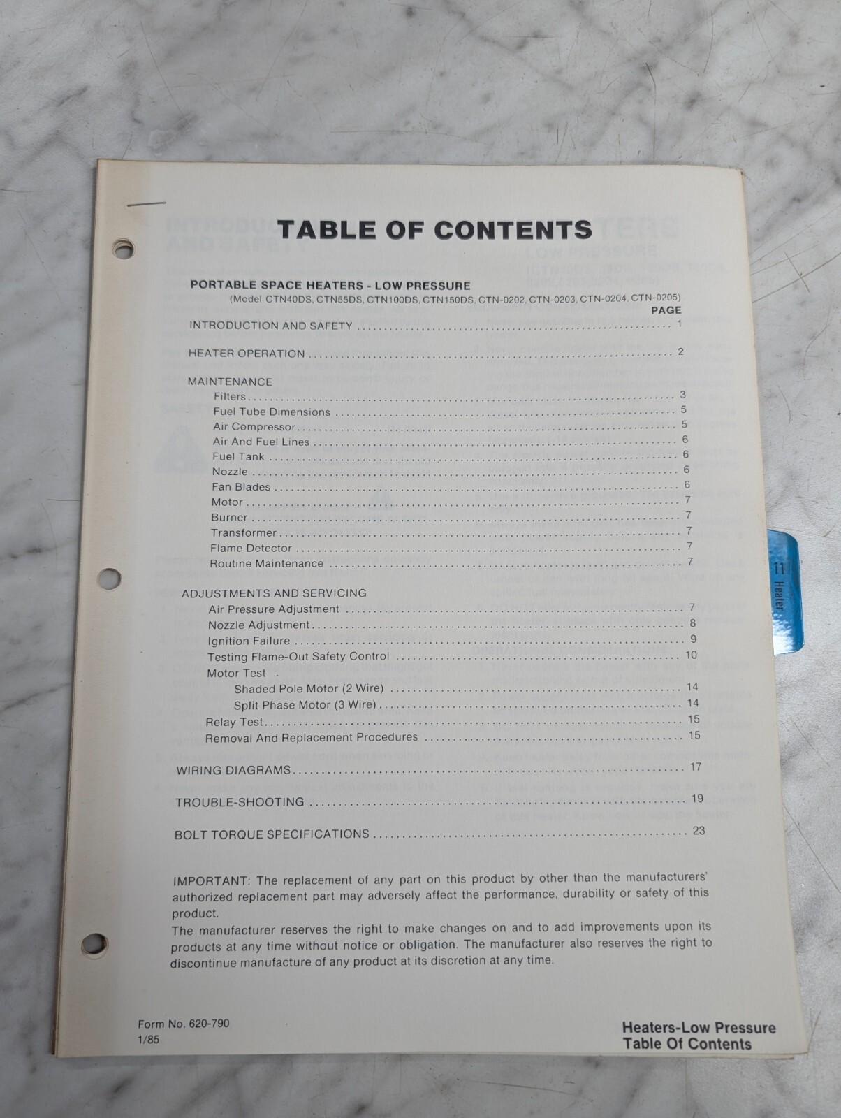 Ford Repair Service Manual Portable Space Heaters Ctn 40 55 100 150 Ds 0202-0205