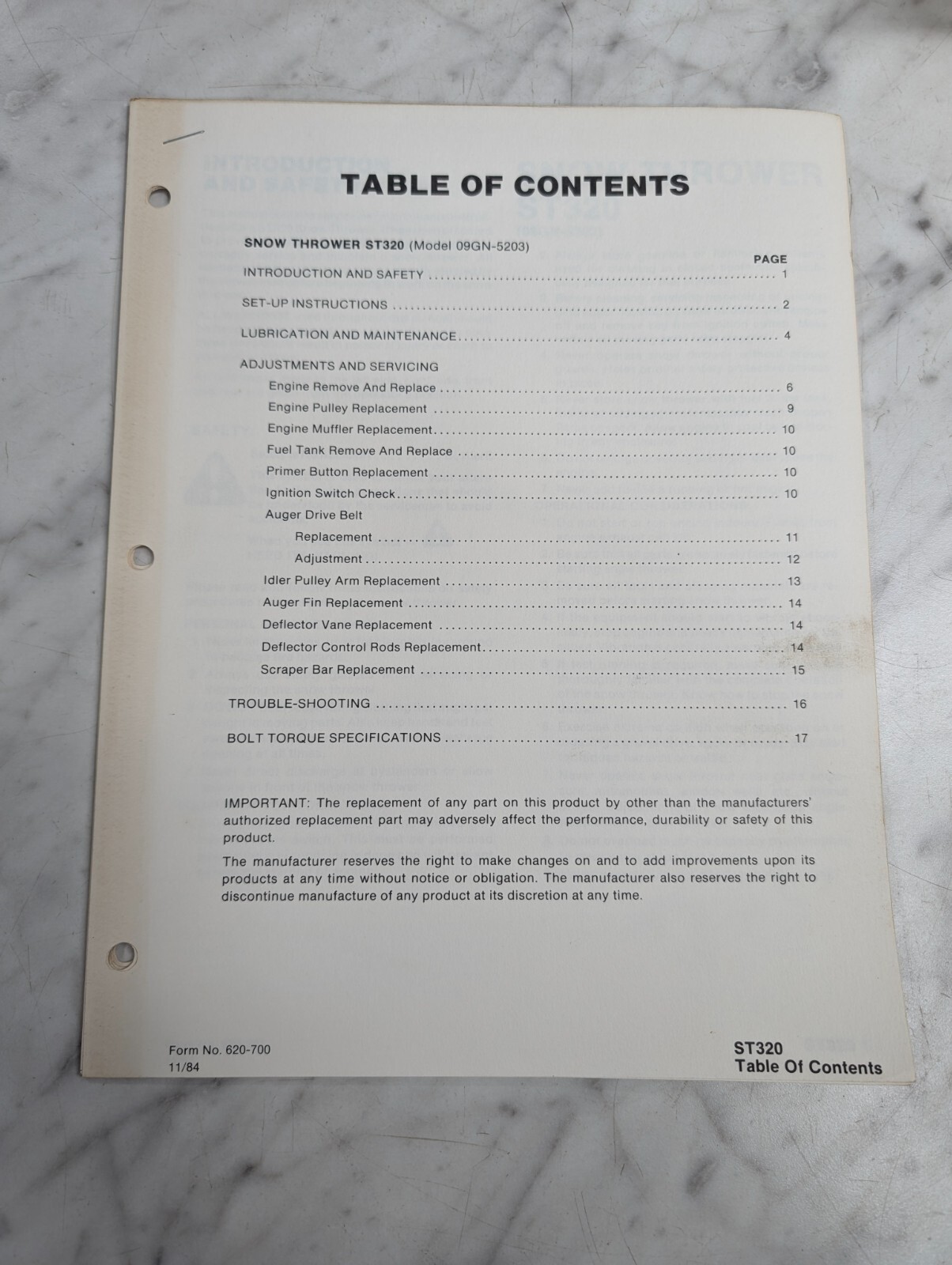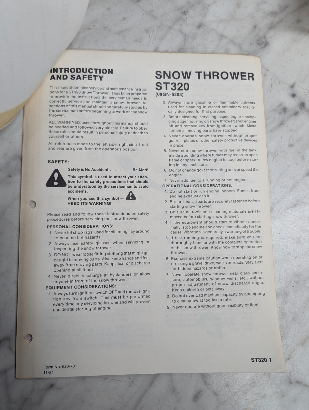 Ford Repair Service Manual Snow Thrower Blower St320 Model 09Gn 5203 1984