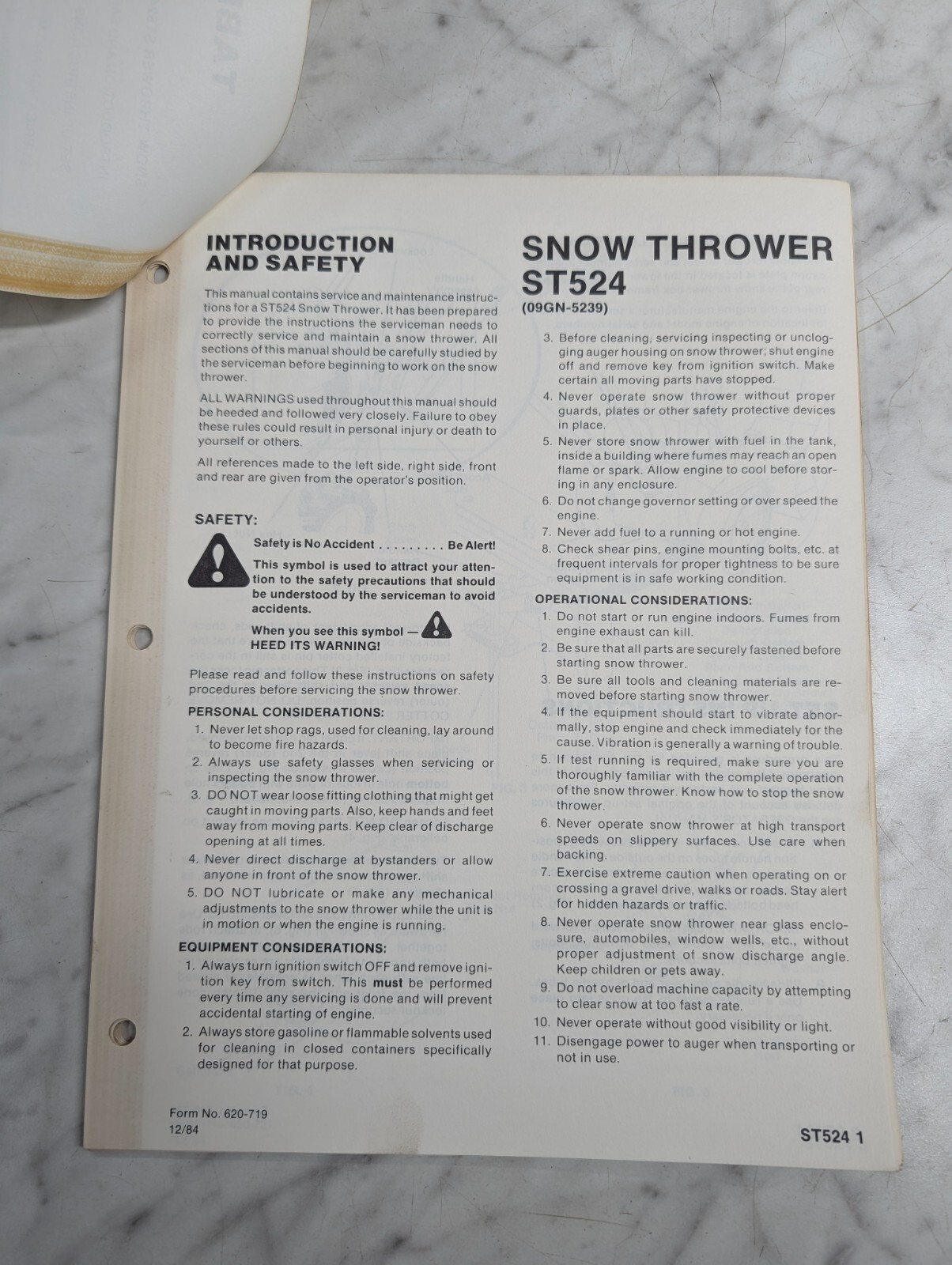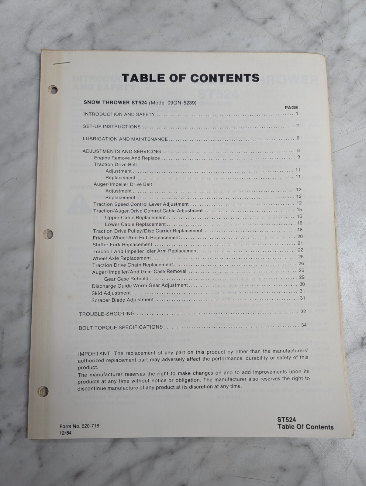 Ford Repair Service Manual Snow Thrower Blower St524 Model 09Gn 5239 1984