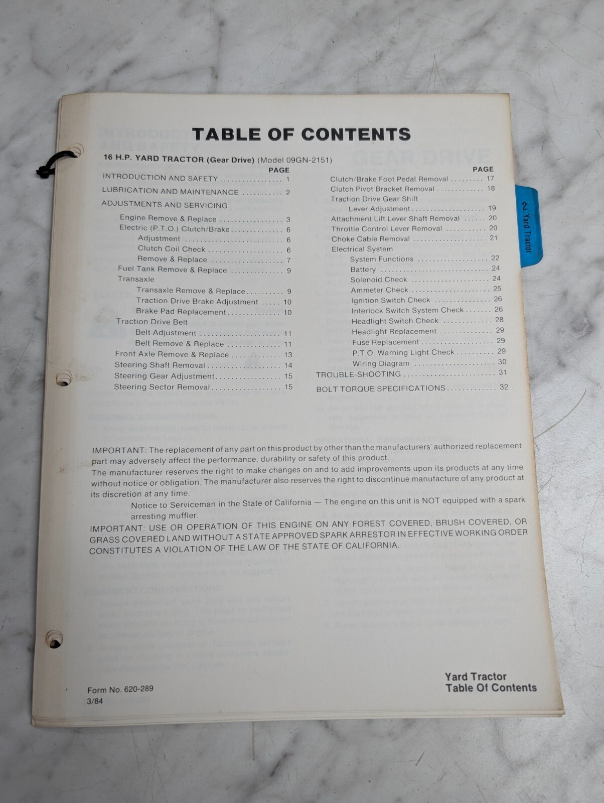 Ford Repair Service Manual Yard Tractors 15 Hp 09Gn 2151 1984