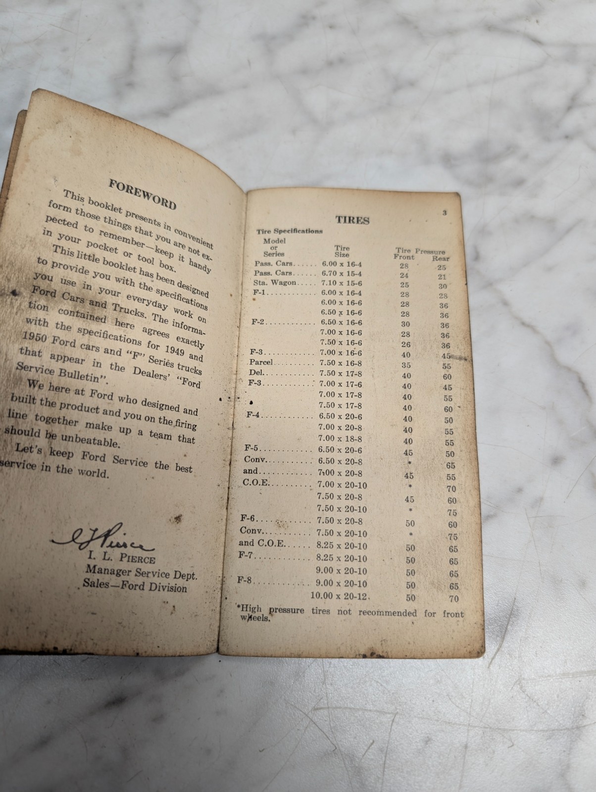 Ford Service Specifications 1949-50 Passenger Cars & F-Series Trucks Manual Oem