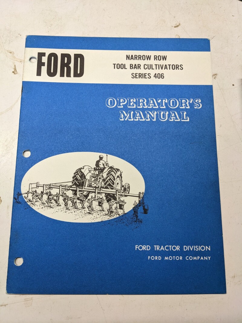 Ford Tractor Operators Manual Owner Series 406 Tool Bar Cultivator Narrow Row