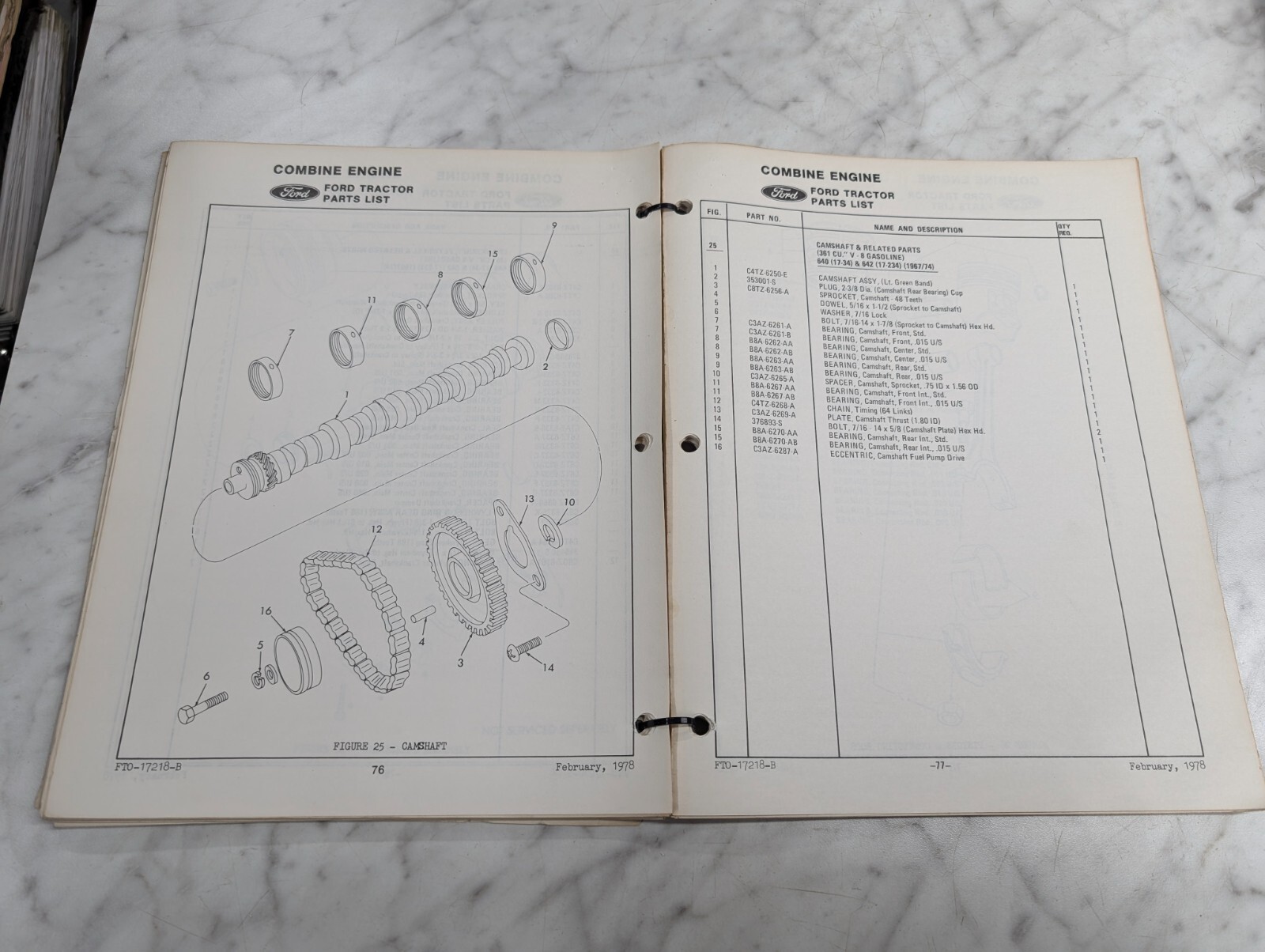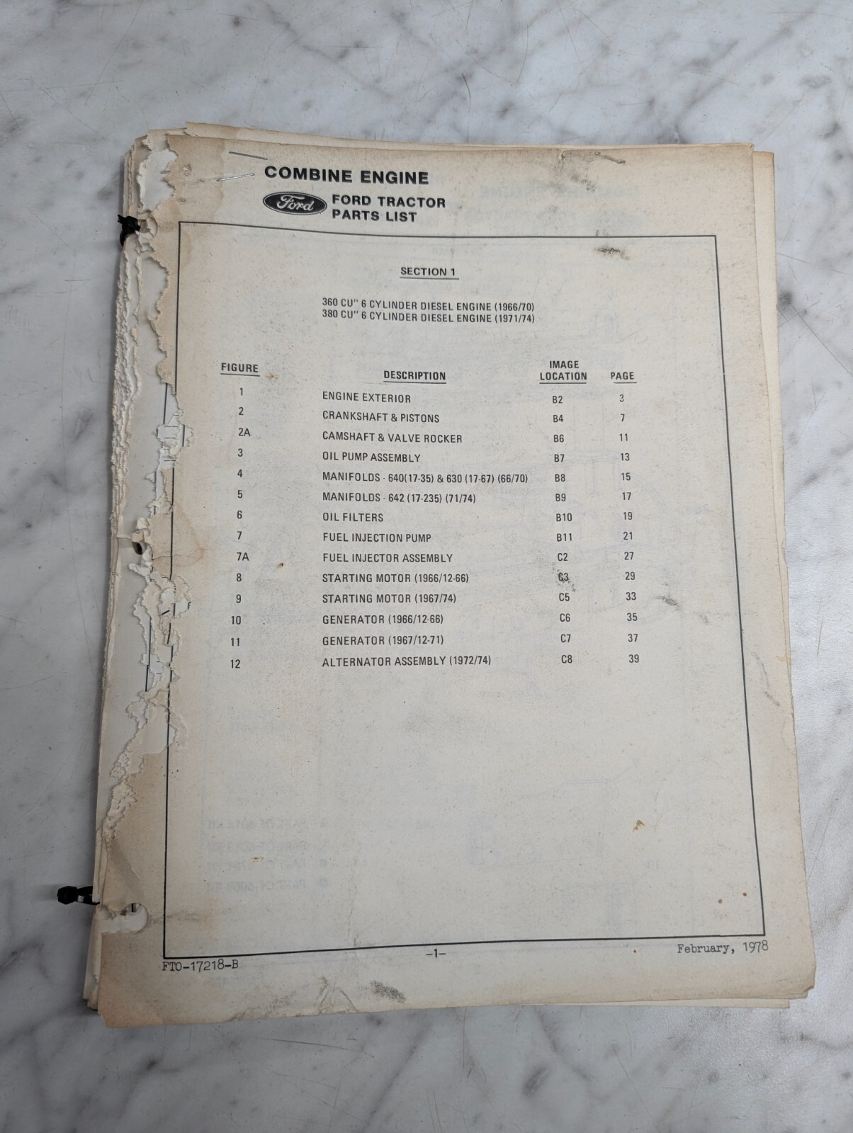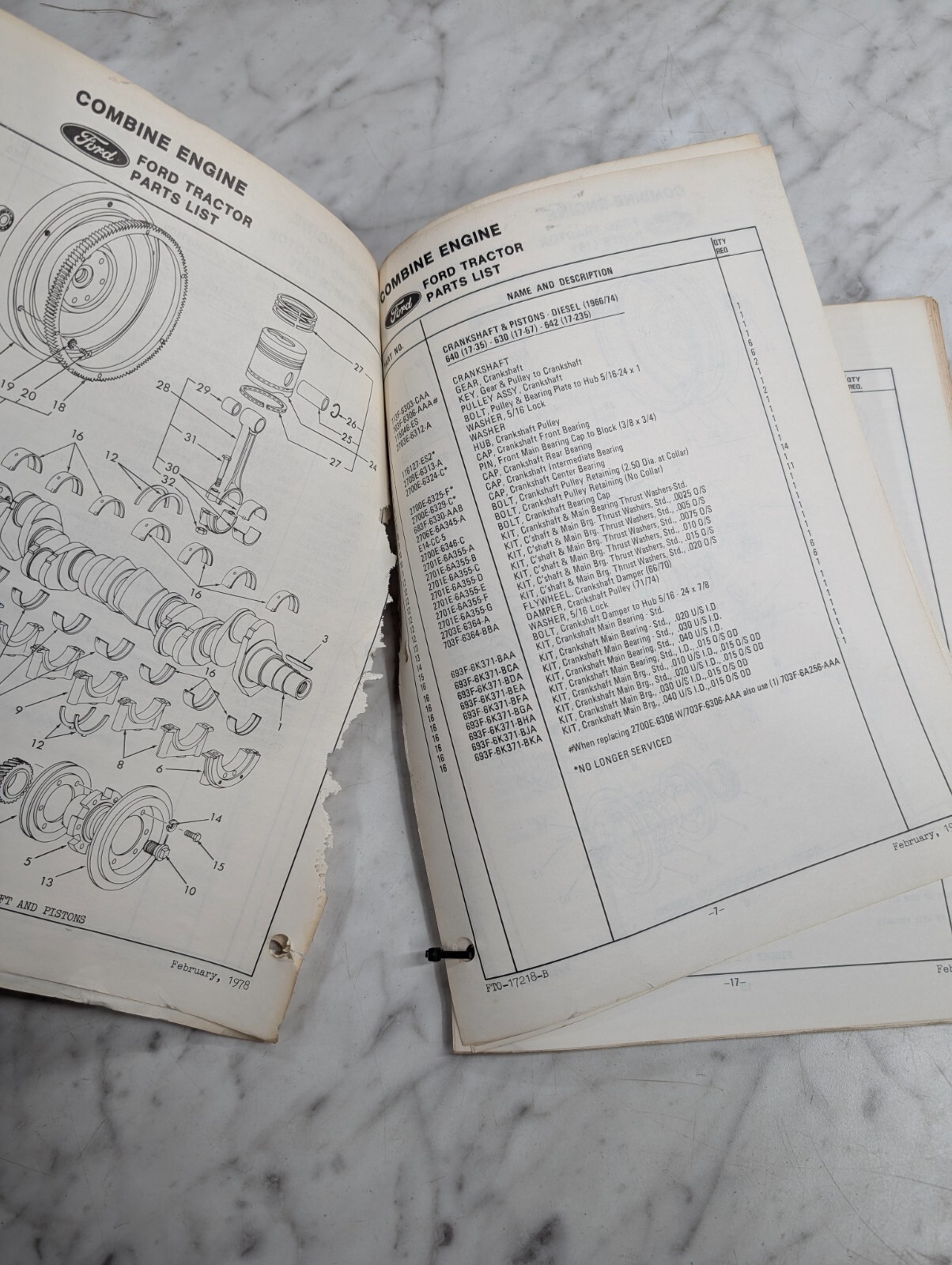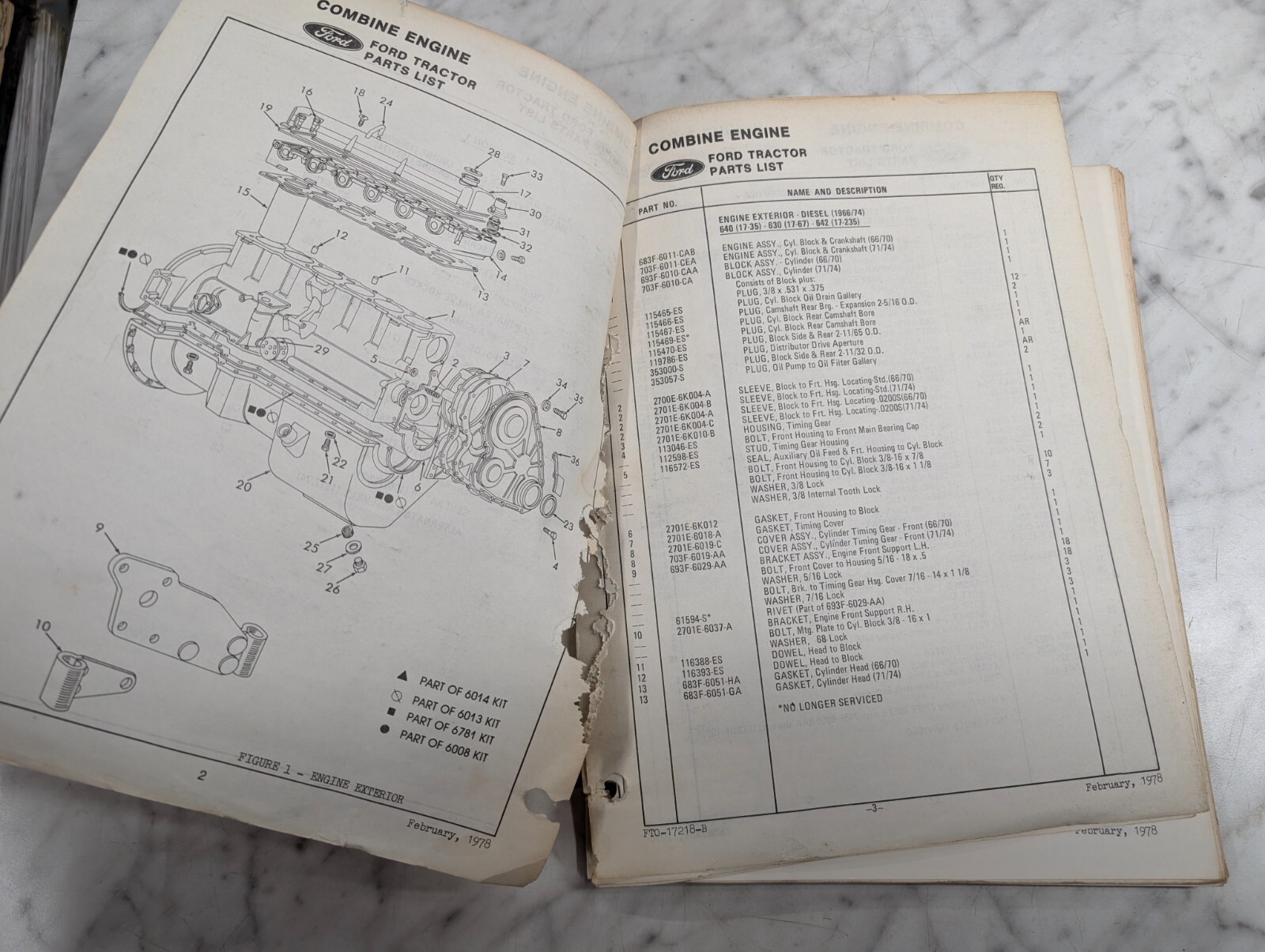 Ford Tractor Repair Parts List Manual Catalog Combine Engine 360 380 Cu” Diesel