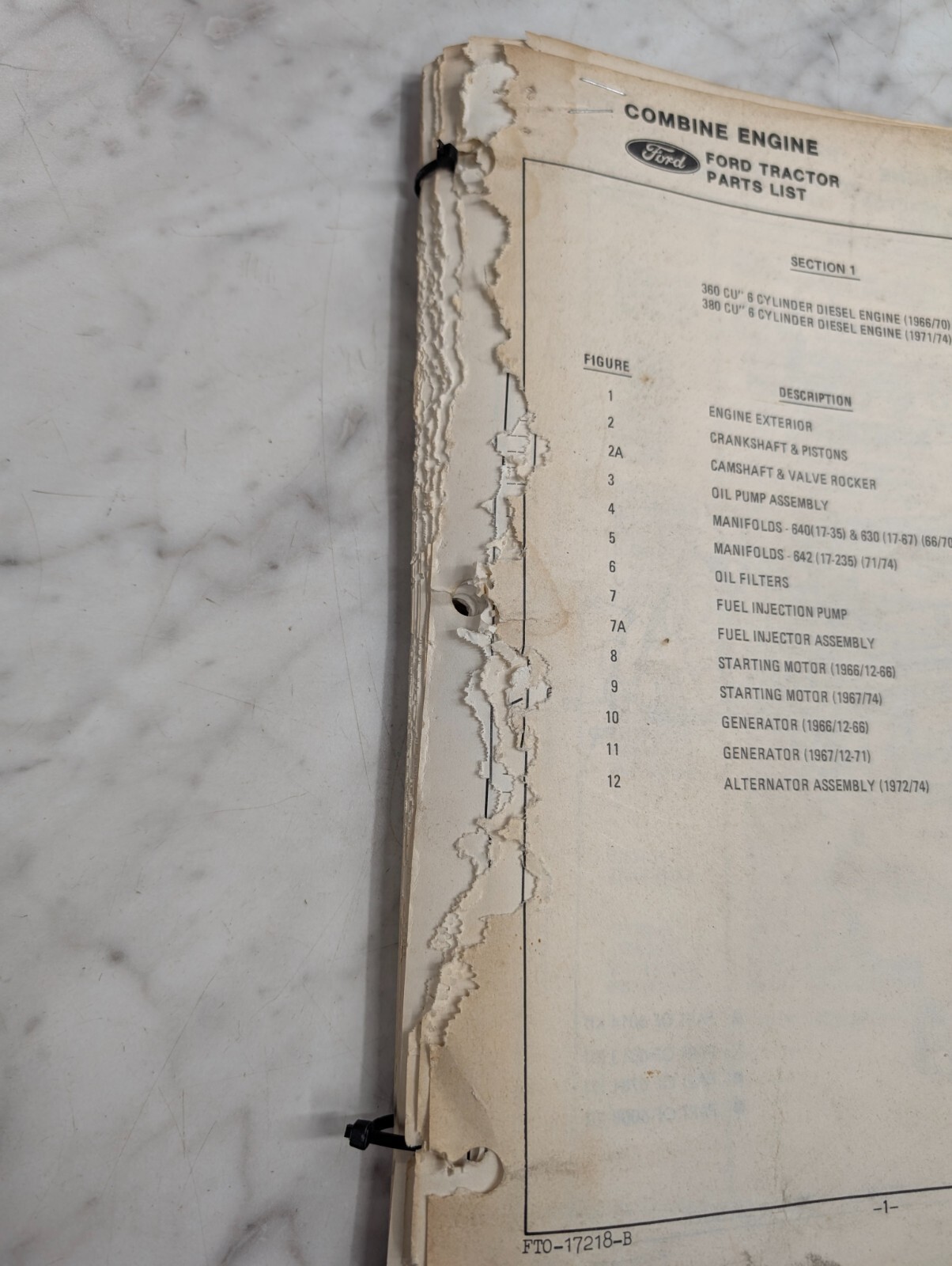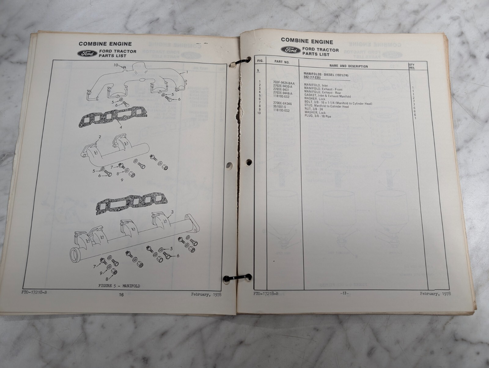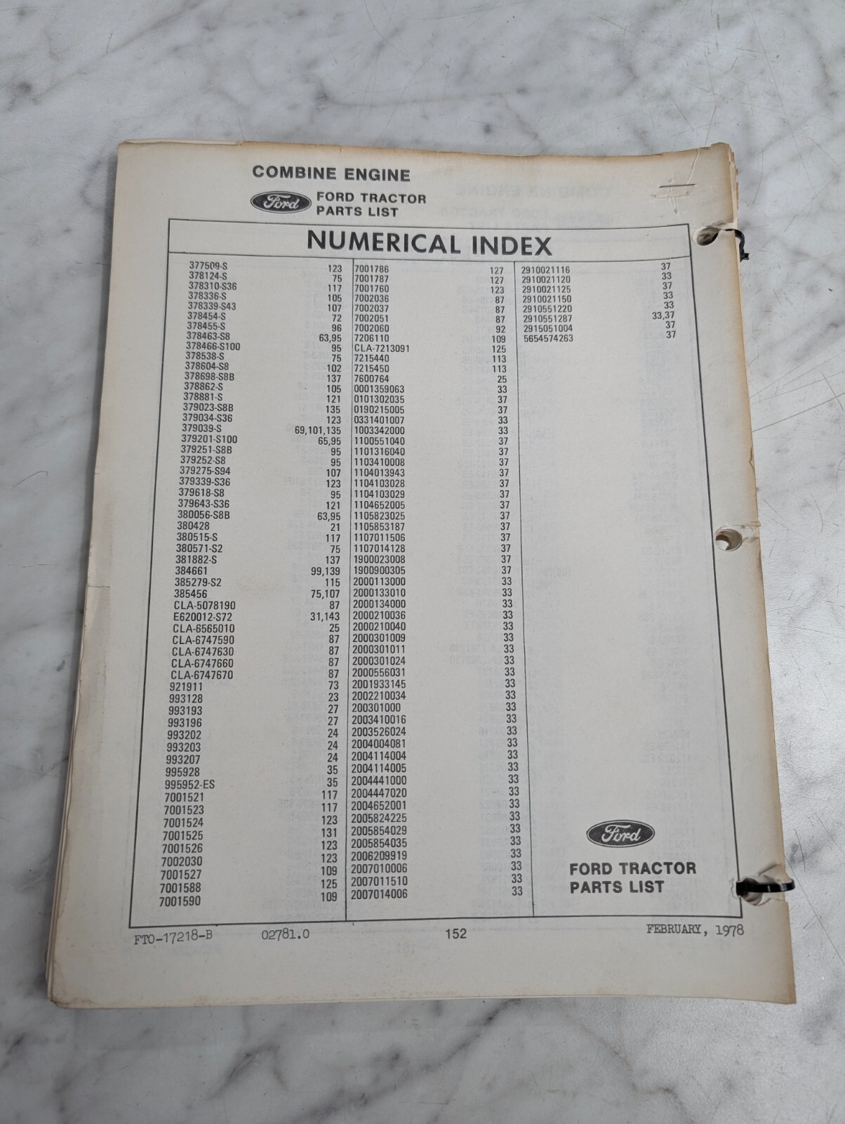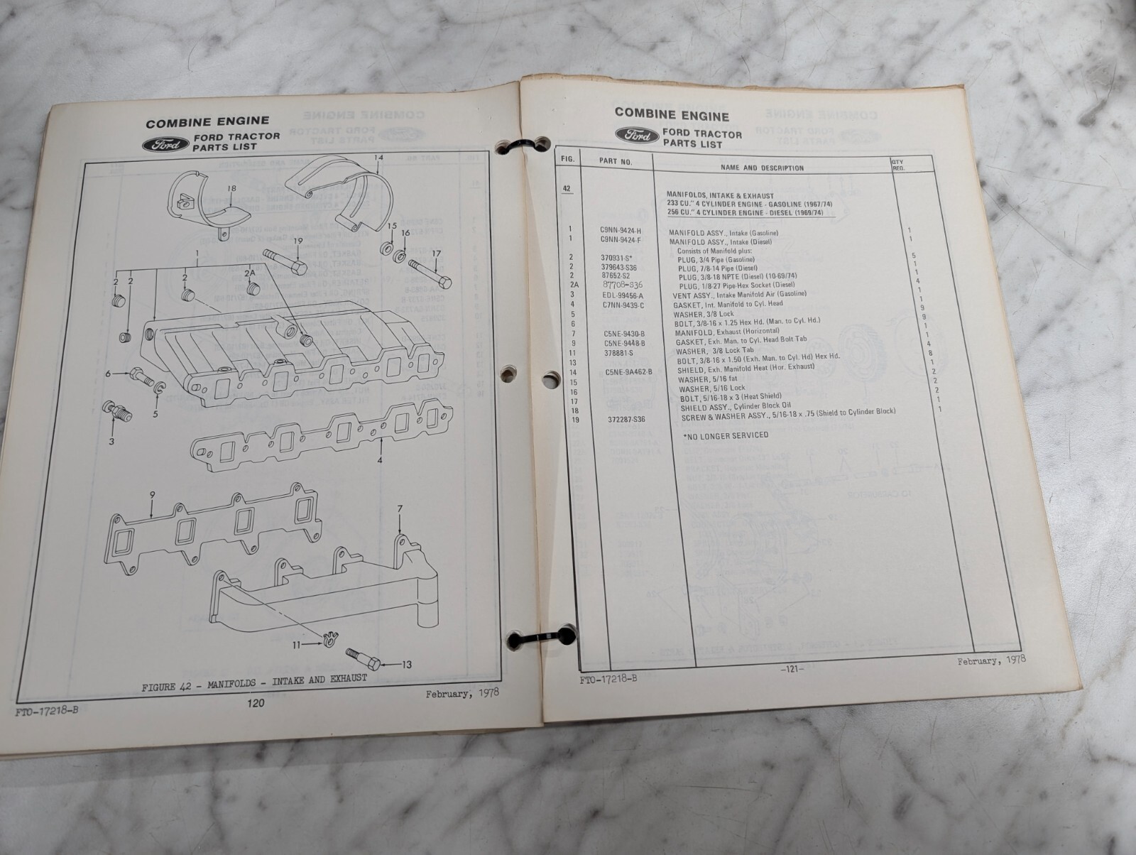 Ford Tractor Repair Parts List Manual Catalog Combine Engine 360 380 Cu” Diesel