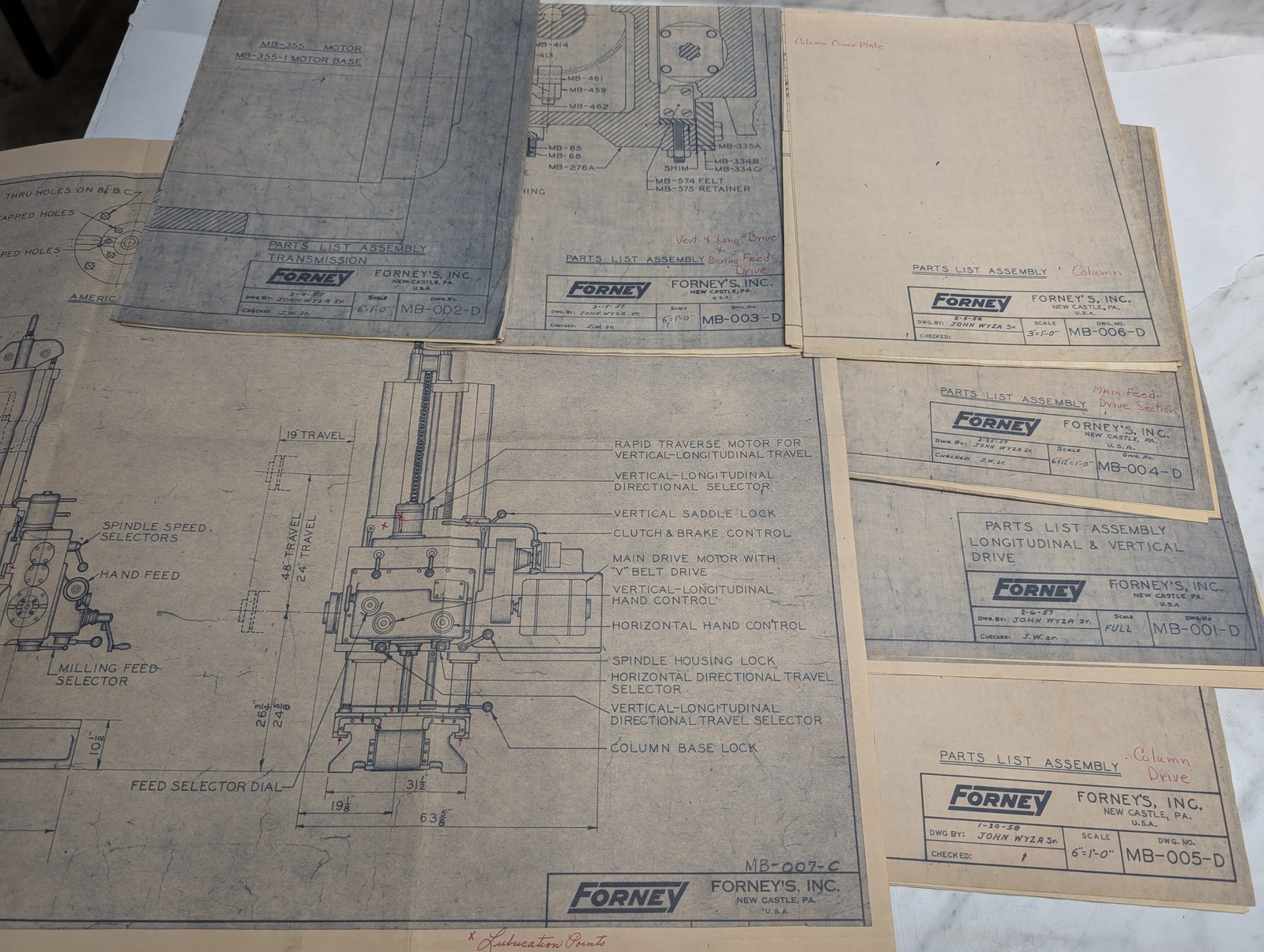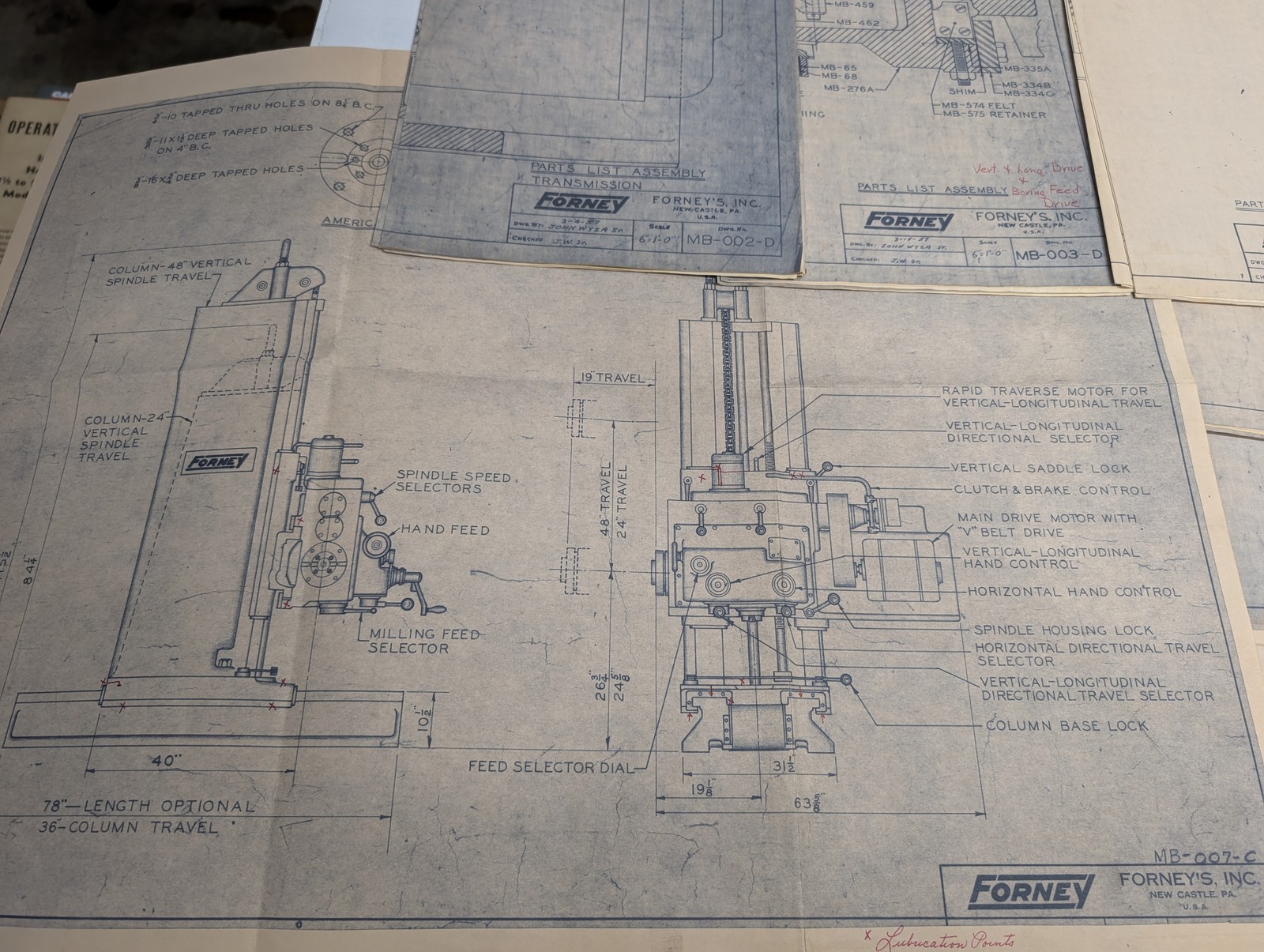 Forney Machine Tool Boring Blue Prints Drawings Diagrams Information Lot