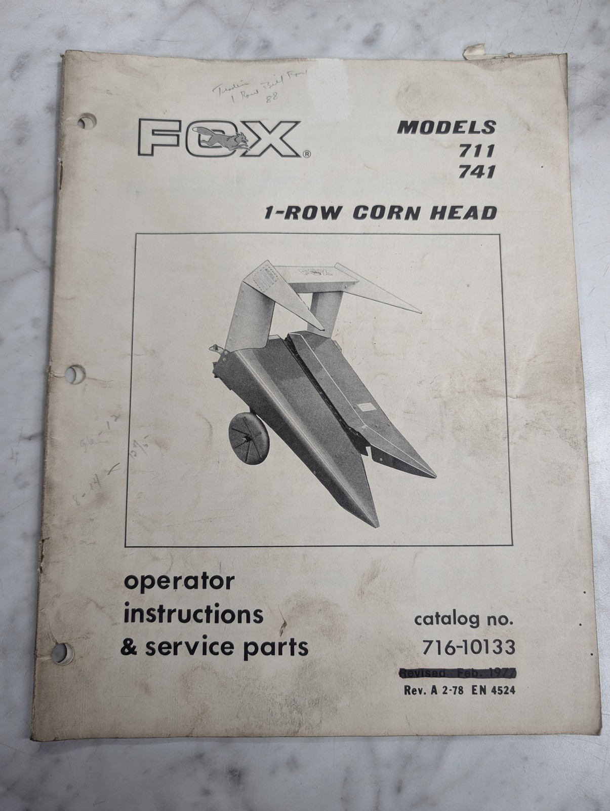 Fox Instruction Service Manual Parts List Model 711 741 1-Row Corn Head 1975