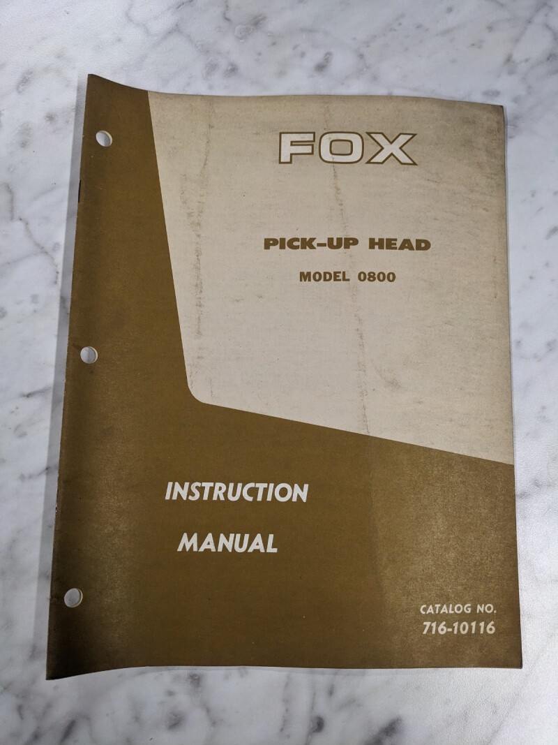 Fox Operator Service Manual Model 0800 Pick-Up Head 716-10116 Farm Equipment