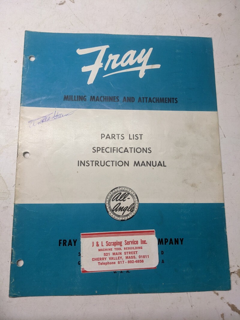 Fray Milling Machines Operator Service Manual Parts List Catalog 10-Rh 4