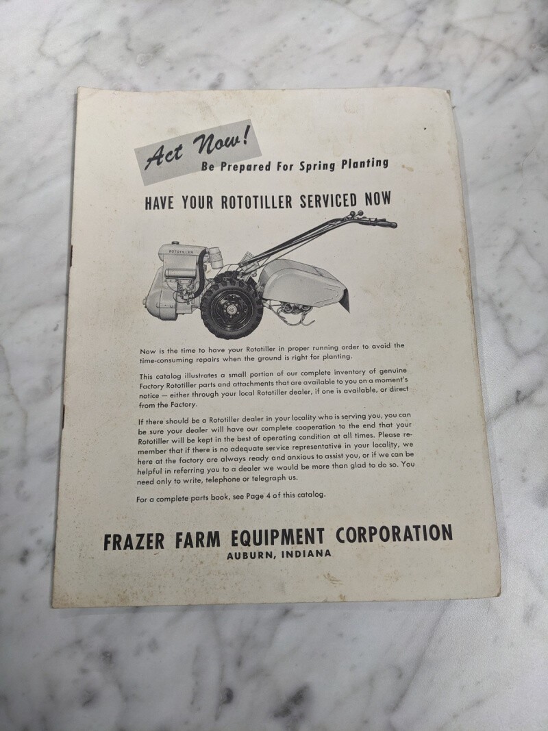 Frazer Farm Equipment Rototiller Price List Service & Maintenance Parts Catalog