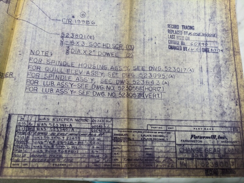 Futurmill Change Gear Trans 30 Hp Assembly Drawing Print Diagram 1974