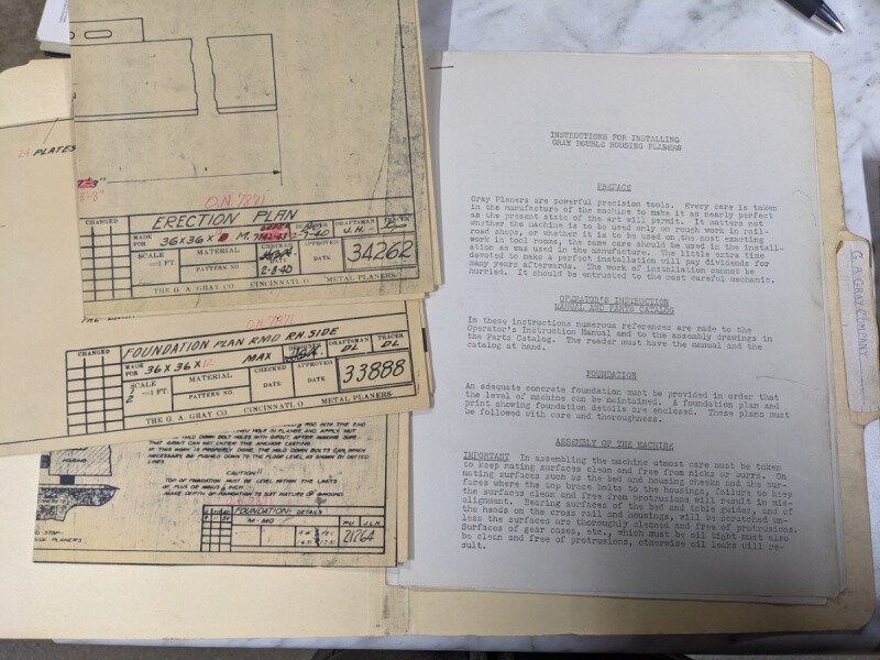 Ga Gray Comnpany Double Housing Planers Machine Installation Instruction Manual