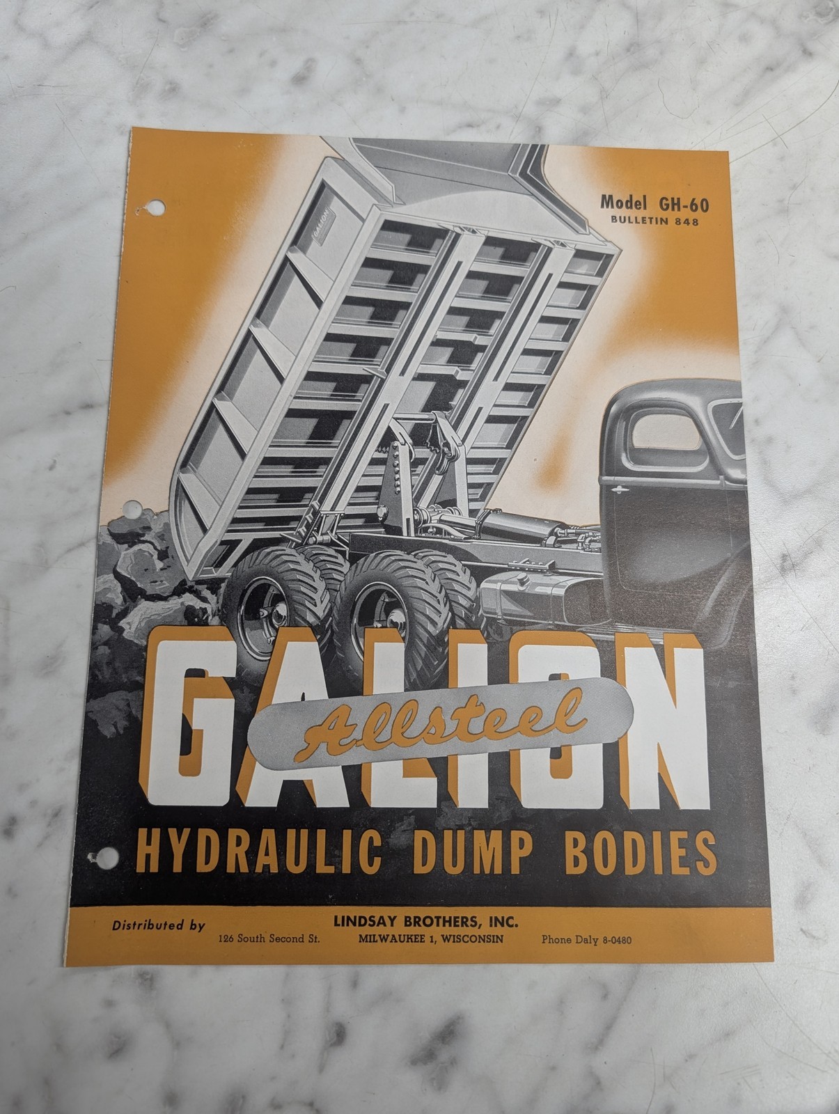 Galion Sales Literature Brochure #848 Allsteel Gh-60 Hydraulic Dump Bodies