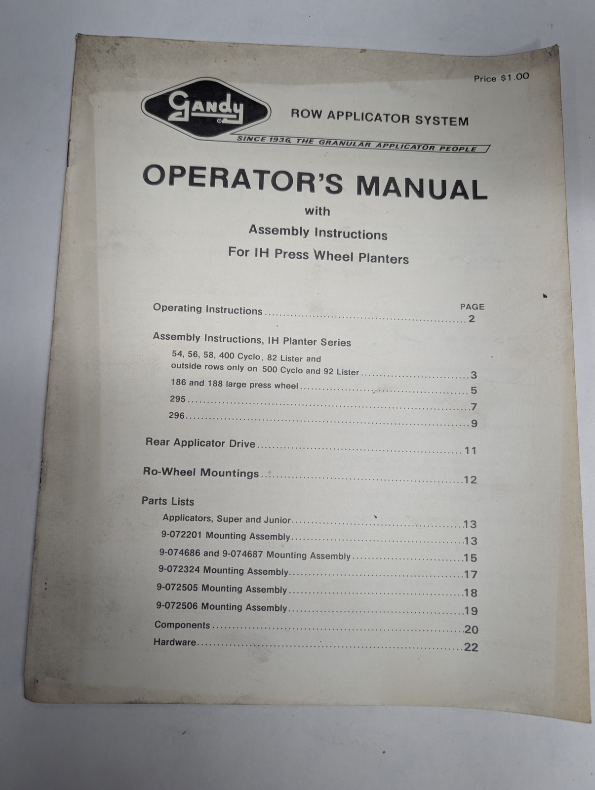 Gandy Operator’S Owners Instruction Manual Row Crop Applicator Ih Press Wheels