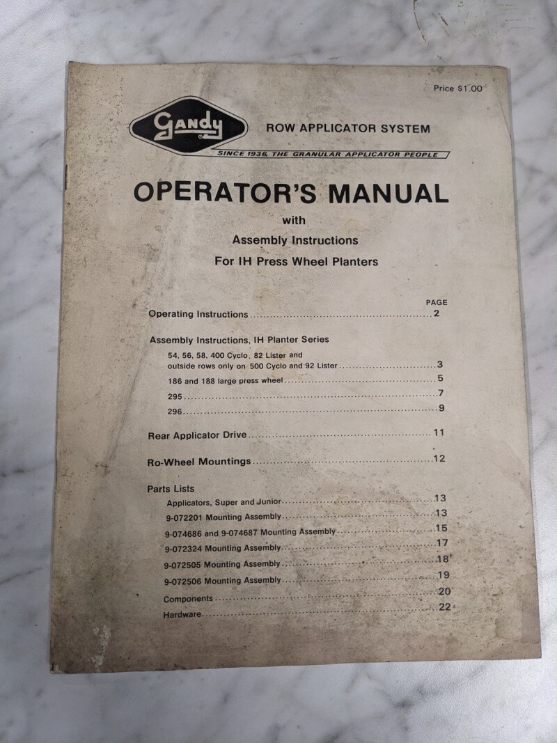 Gandy Row Applicator System Operator Service Manual Parts List Ih Press Planter