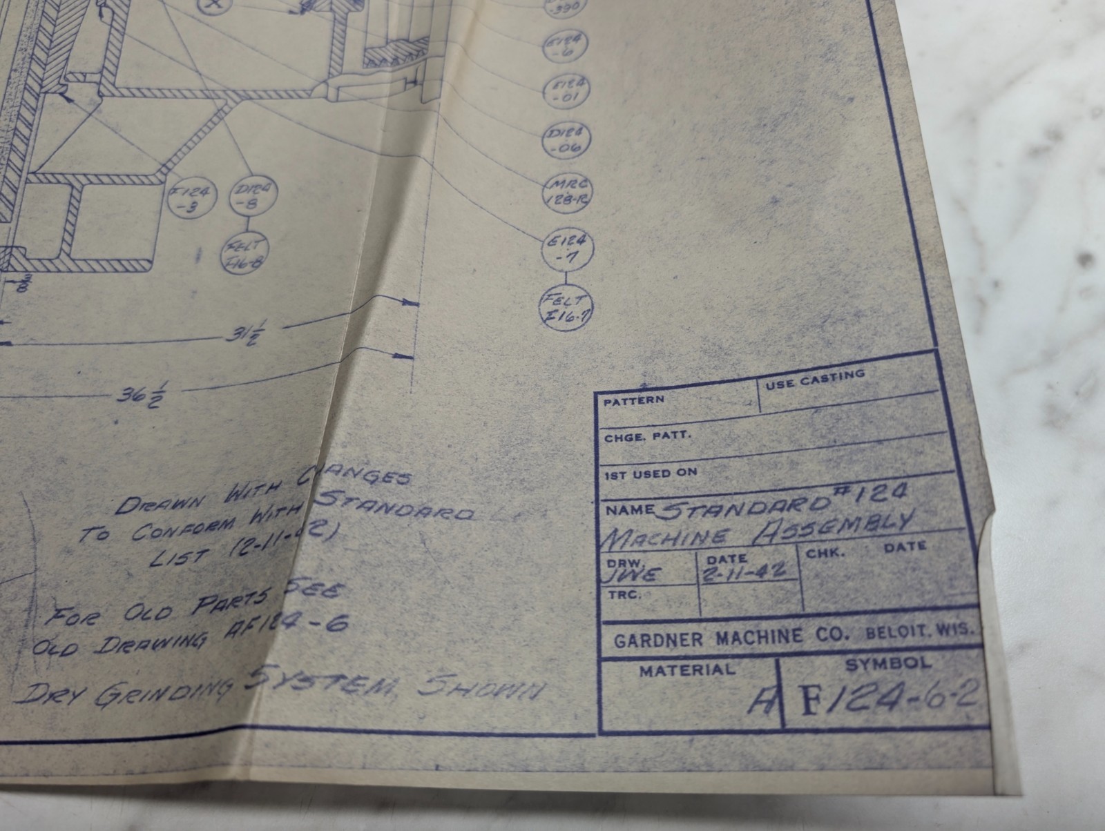 Gardner 124 Machine Assembly Tool Drawing Engineering Diagram Information Print