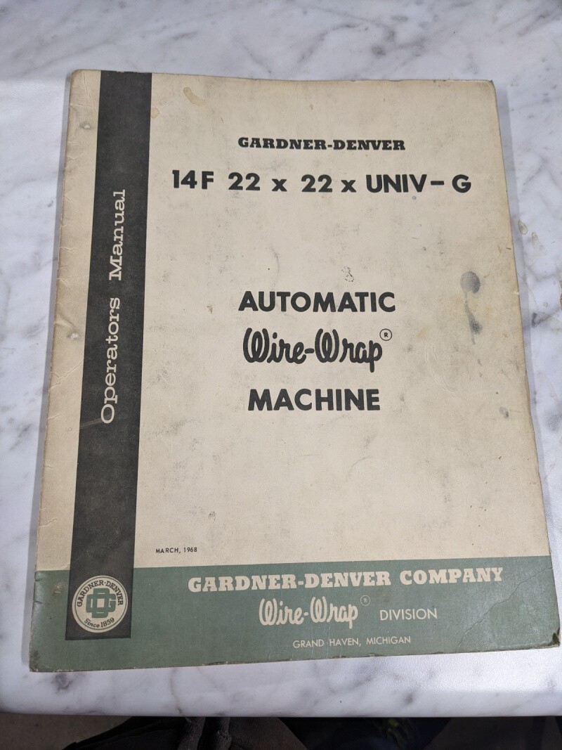 Gardner Denver Auto Wire Wrap Machine 14F 22X22Xuniv-G Operator Service Manual