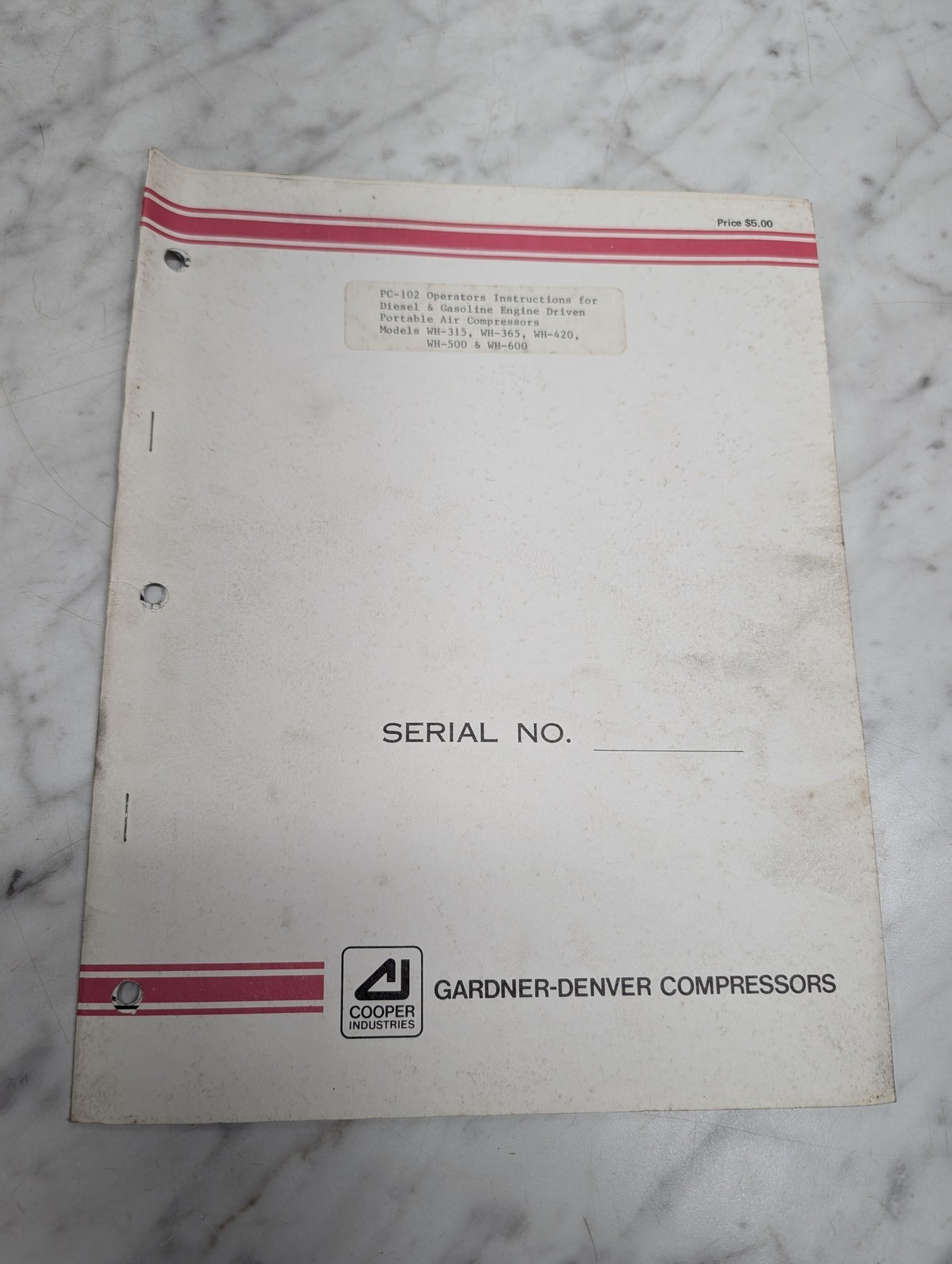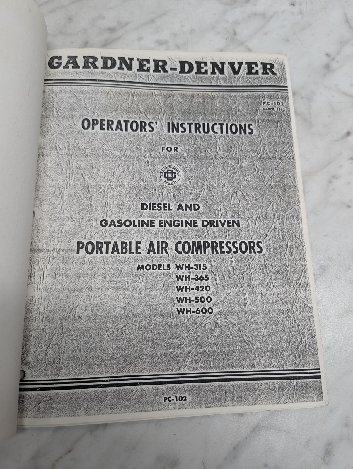 Gardner Denver Compressors Wh 315 420 600 Pc 102 Portable Air Operators Manual
