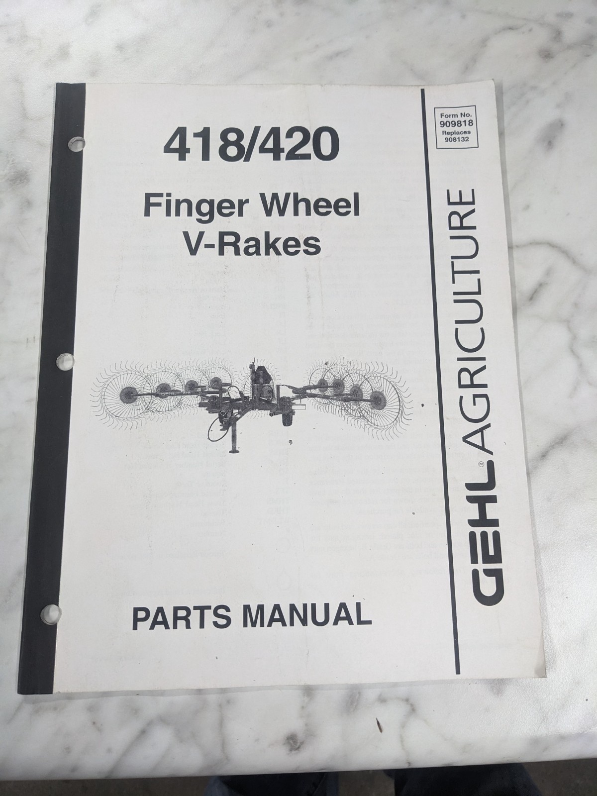 Gehl Agriculture Service Parts List Manual 418/420 Series Finger V-Rake 909818