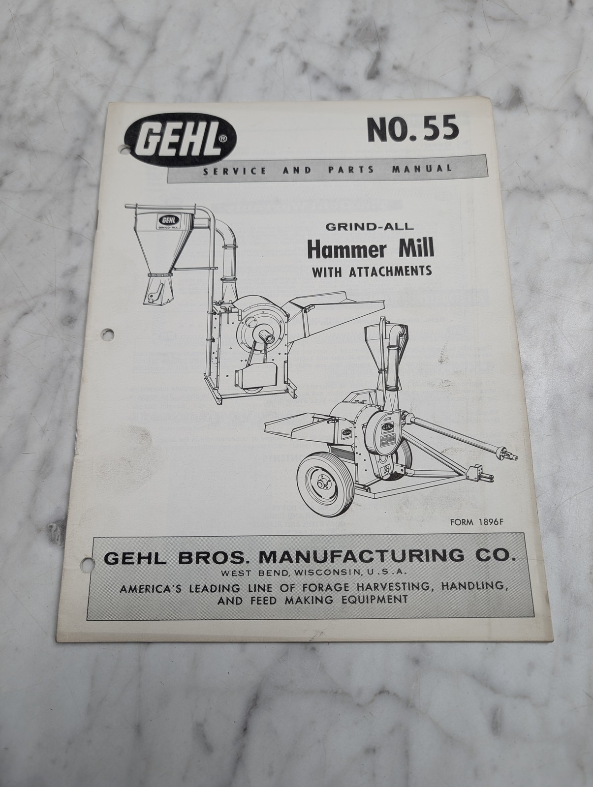 Gehl Hammer Mill No 55 Service And Parts Manual Grind-All With Attachments Book