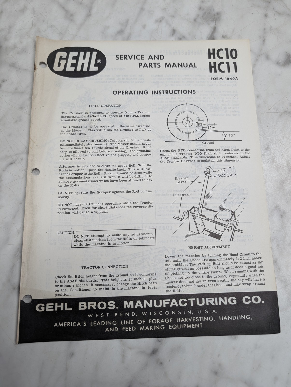 Gehl Hc10 Hc11 Form 1849A Service Parts Manual List Catalog Maintenance Shop