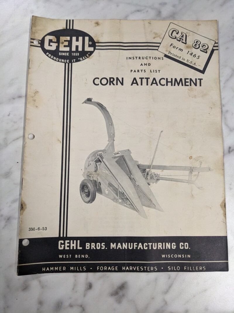 Gehl Operator Service Manual Parts List Book Corn Attachment Ca 82 1465 1953