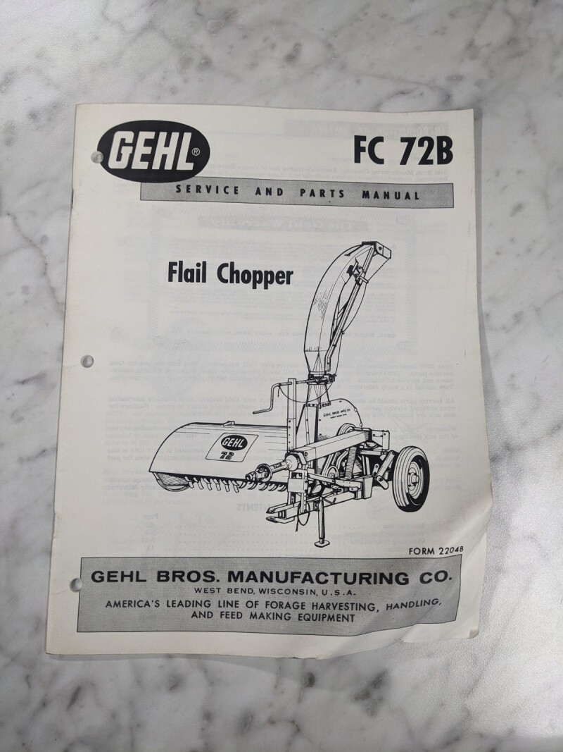 Gehl Operator Service Manual Parts List Book Flail Chopper Fc #72B #2204B