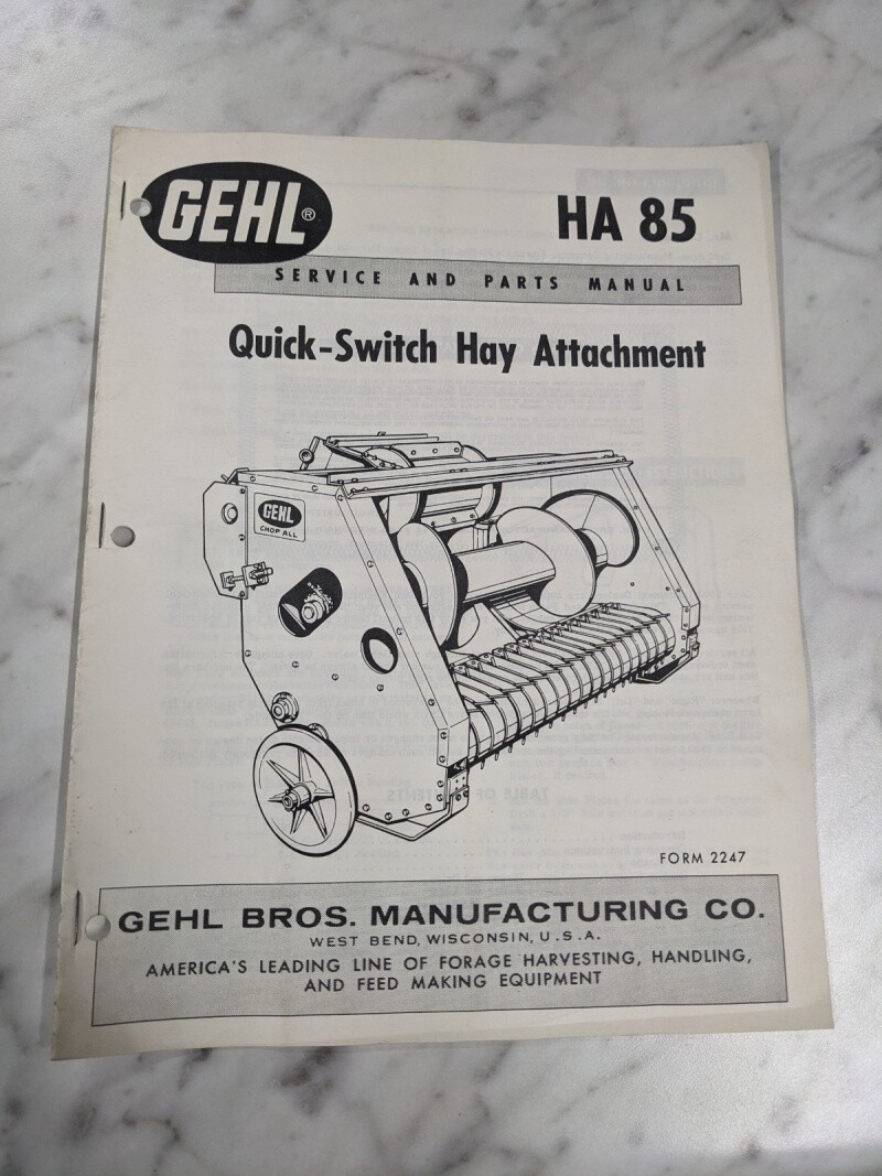 Gehl Operator Service Manual Parts List Quick Switch Hay Attachment Ha 85 2247