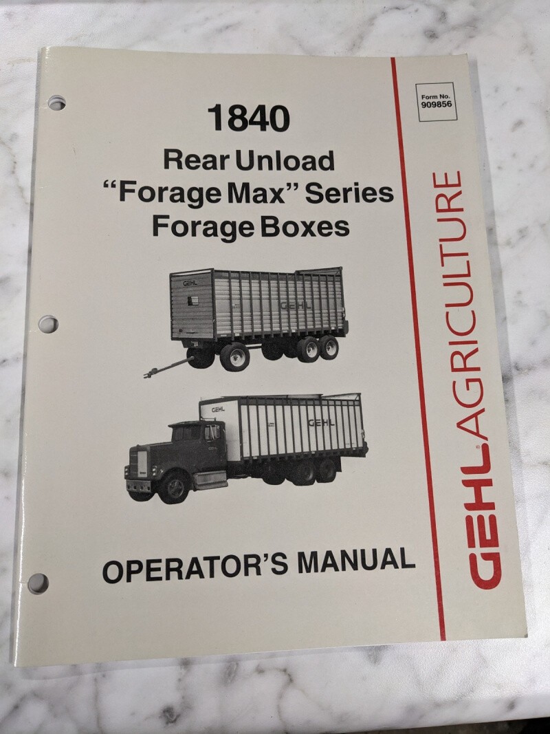 Gehl Operator Service Owner Manual 1840 Rear Unload Foragemax Boxes 909586