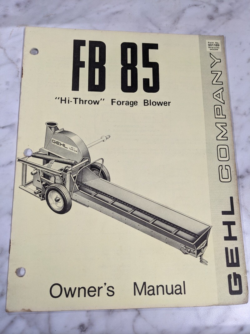 Gehl Operator Service Owner Manual Fb 85 Hi Throw Forage Blower 901189