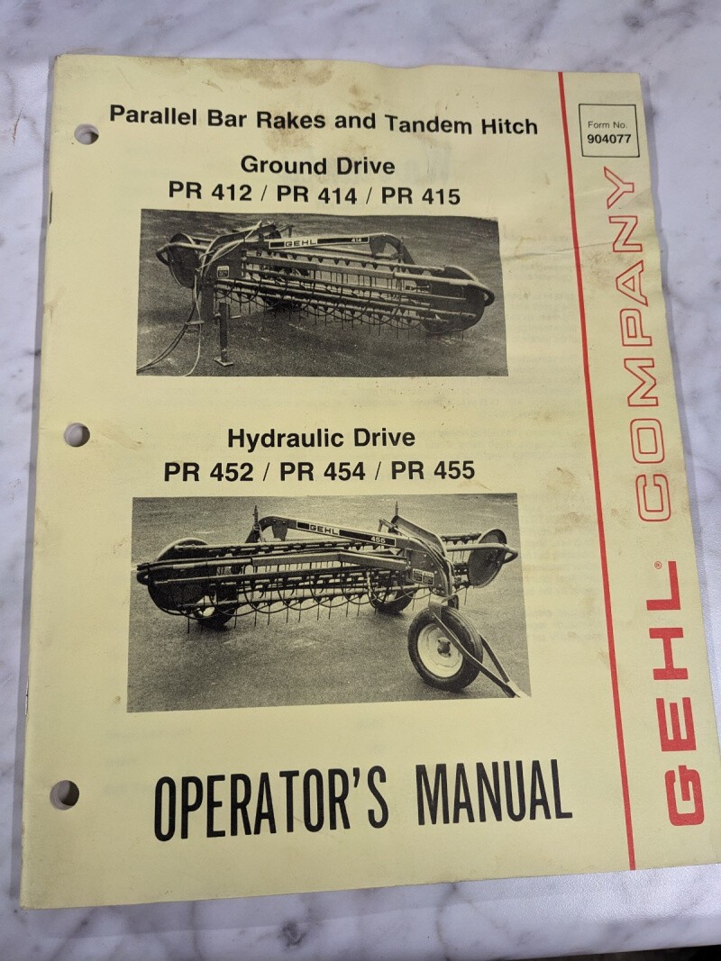 Gehl Operator Service Owner Manual Parallel Bar Rakes Pr 412 414 415 452 454 455
