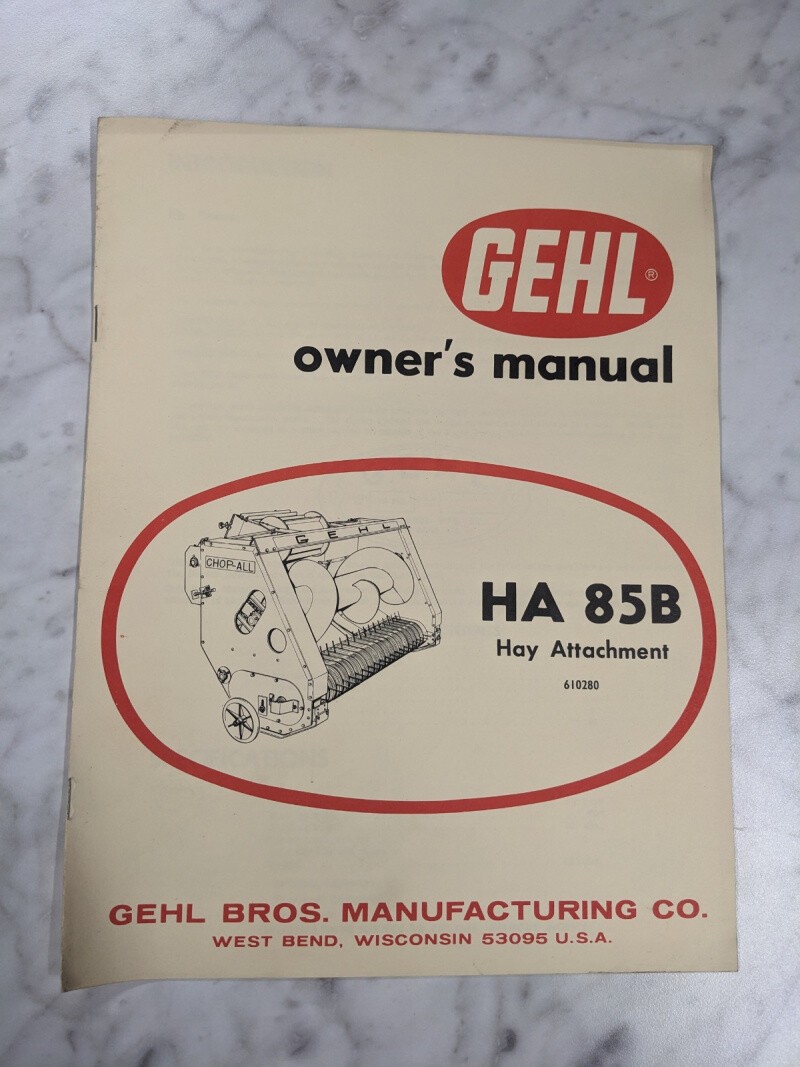 Gehl Operator Service Owners Manual Ha 85B Hay Attachment 610280