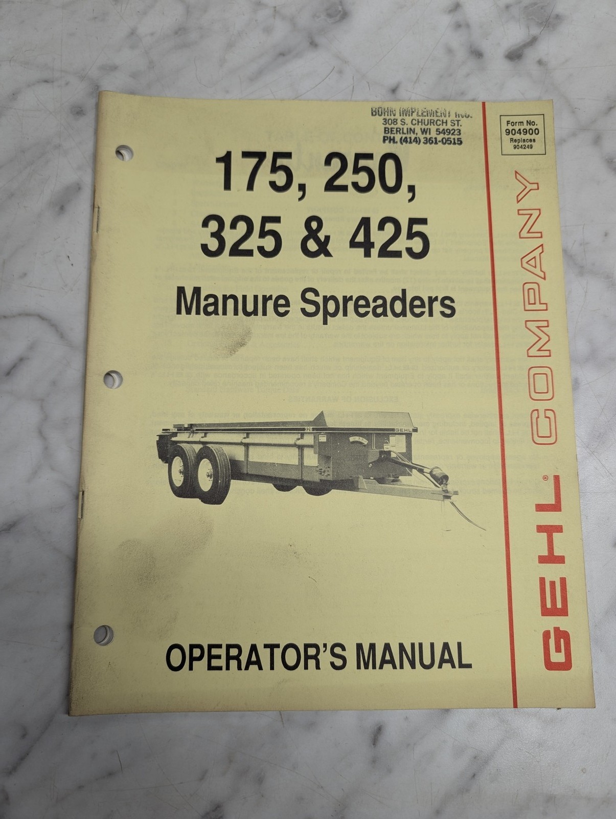 Gehl Operator’S Instruction Manual 175 250 325 425 Manure Spreaders 904900