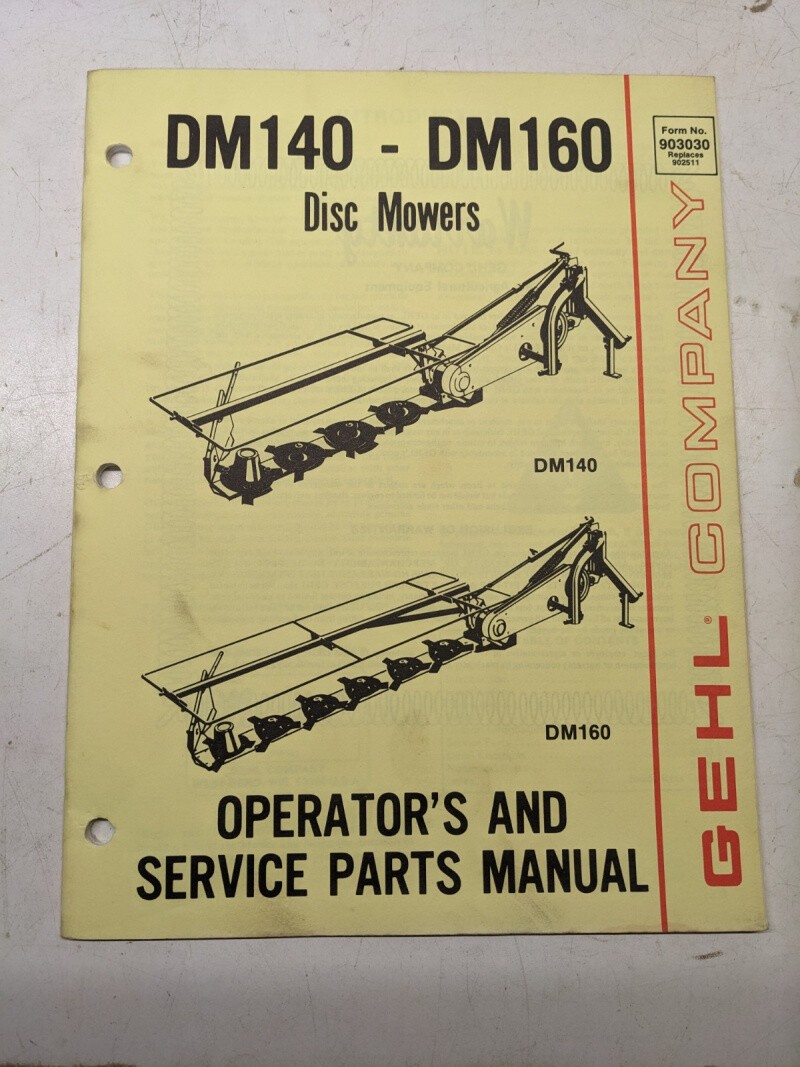 Gehl Operators Manual Maintenance Service Farm Shop Book Dm140-Dm160 Disc Mower
