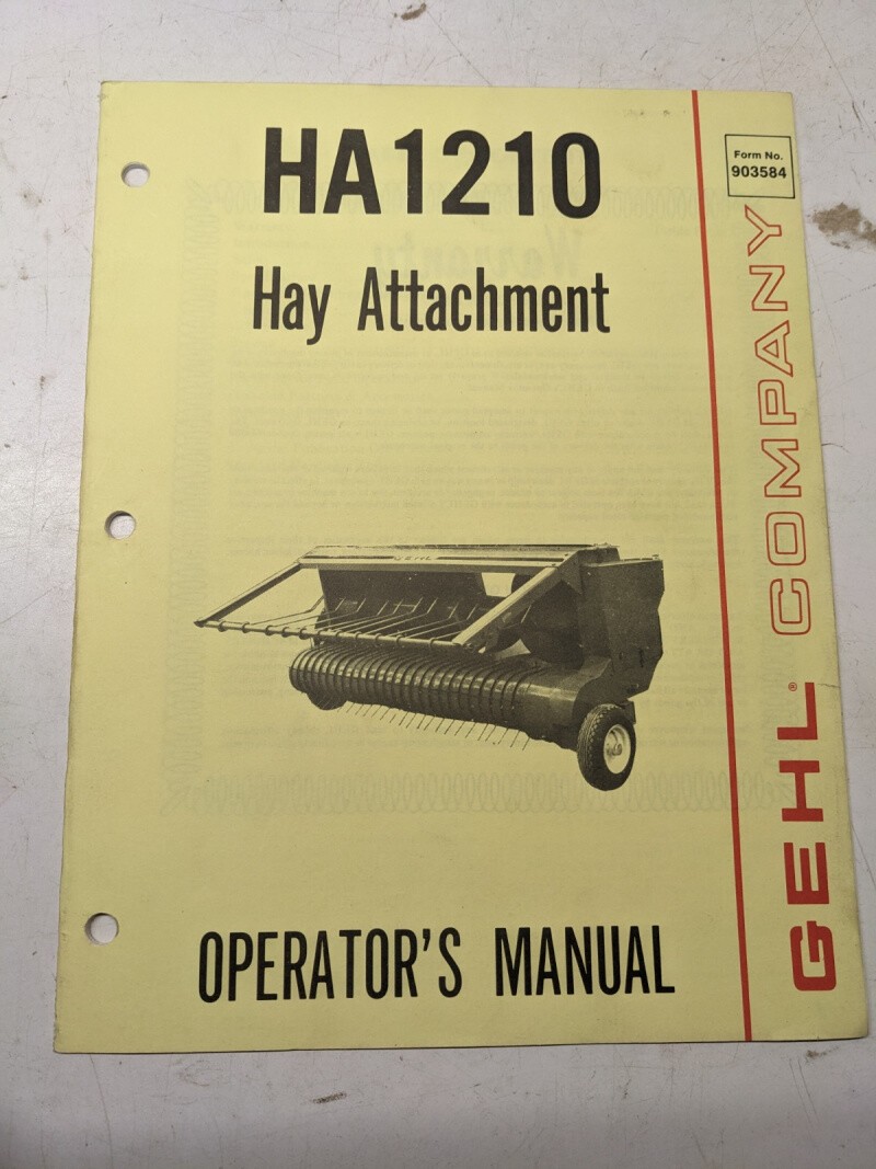 Gehl Operators Manual Maintenance Service Farm Shop Book Ha1210 Hay Attachment